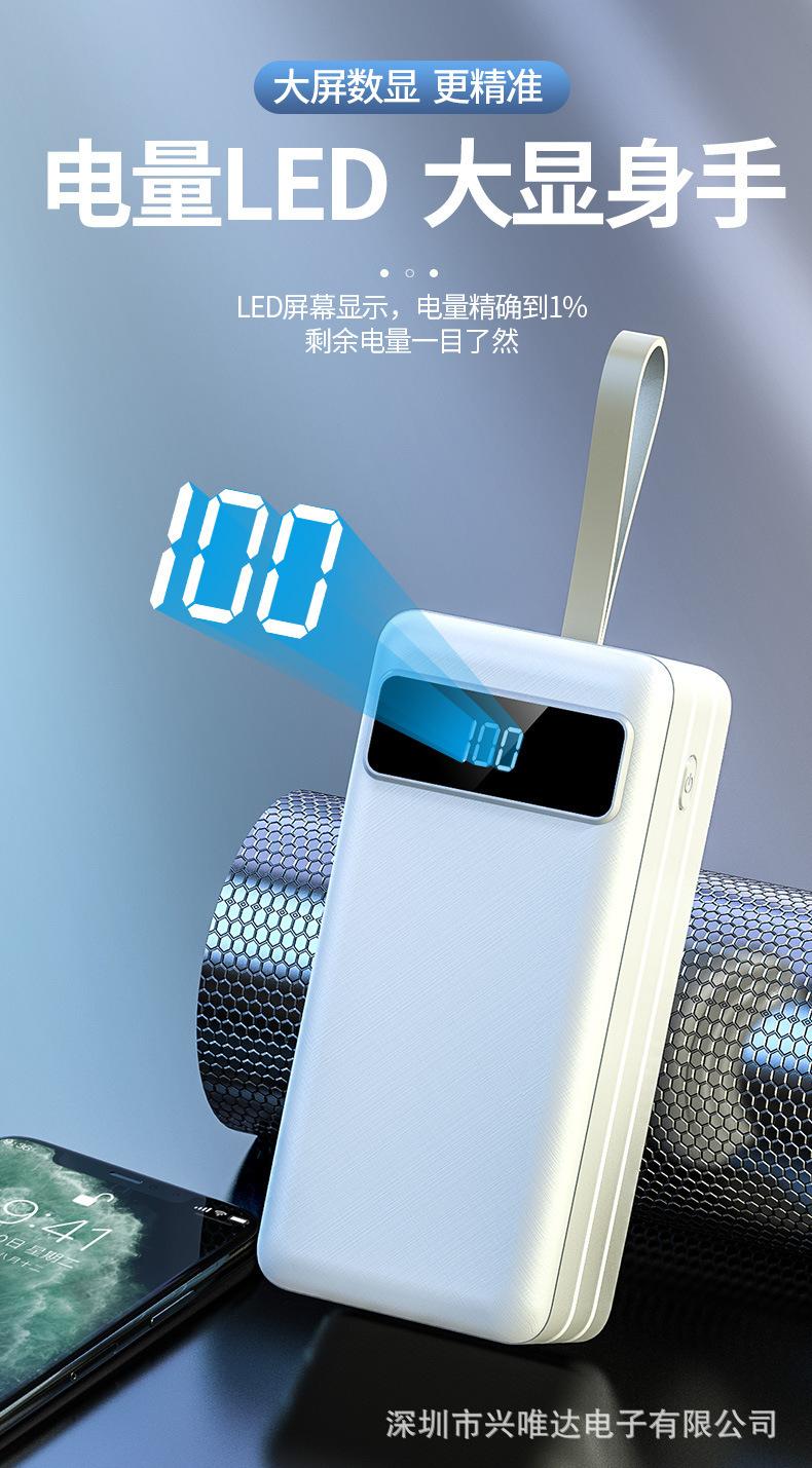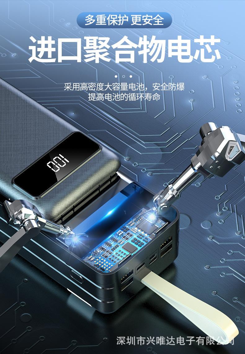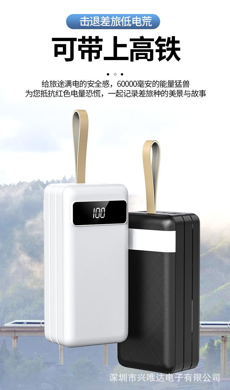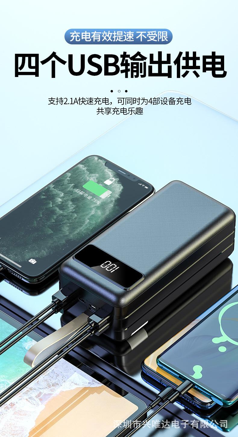 Esta batería externa móvil tiene una capacidad de 60,000 mAh y está equipada con 6 baterías de polímero de litio integradas, lo cual es suficiente para 60,000 mAh. También tiene un indicador de energía digital LED. Viene con tres interfaces de entrada de alta velocidad convencionales (soporta Apple Lightning, Android Micro y Tipo-C), y 4 salidas USB, que pueden cargar 4 teléfonos móviles al mismo tiempo. Utiliza una carcasa industrial de ABS+PC, ¡que se siente muy bien! Los bordes están diseñados con arcos, lo que la hace lucir muy delgada y ligera. La capacidad en la cotización es la capacidad real. Podemos ajustar la capacidad según las necesidades del usuario. Para detalles, consulte al servicio al cliente.