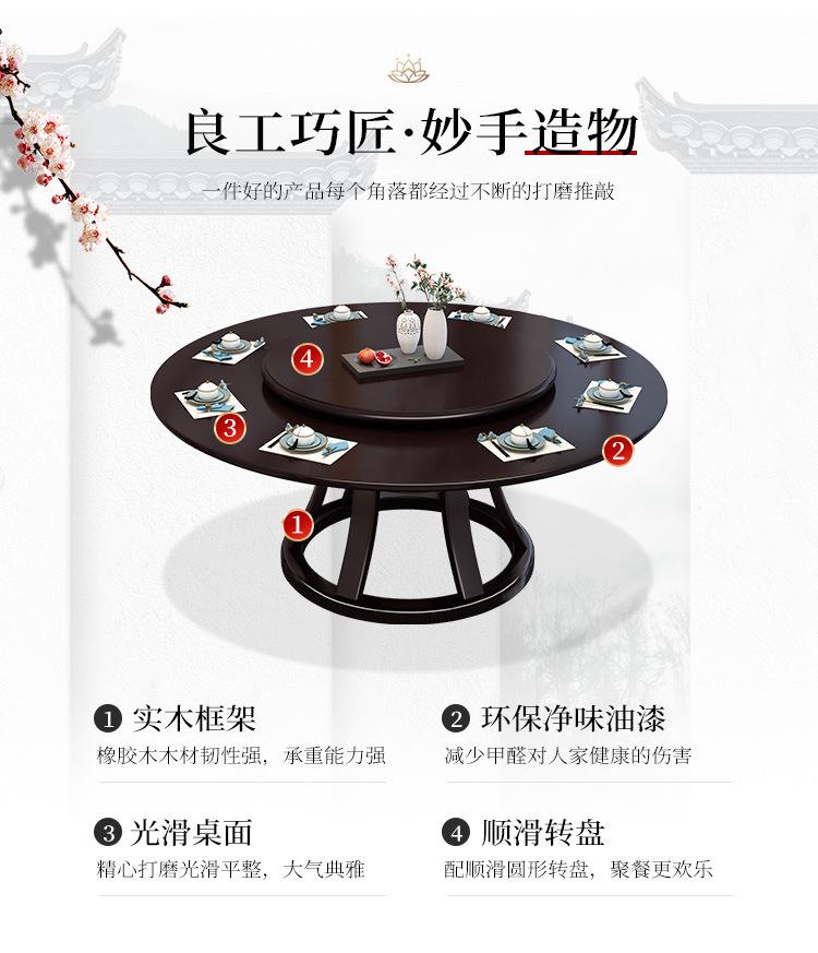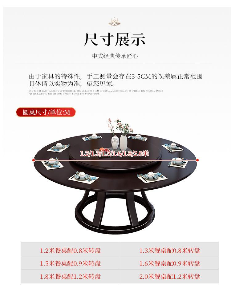 Nueva mesa de comedor y silla de madera maciza de estilo chino, combinación con plataforma giratoria, restaurante, mesa redonda de comedor, mesa de comedor para el hogar, mesa grande para hotel