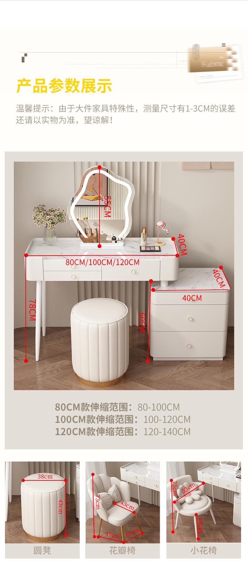 80cm table + cabinet + cloud mirror + round stool. please note what color do you want?, 100cm table + cabinet ...