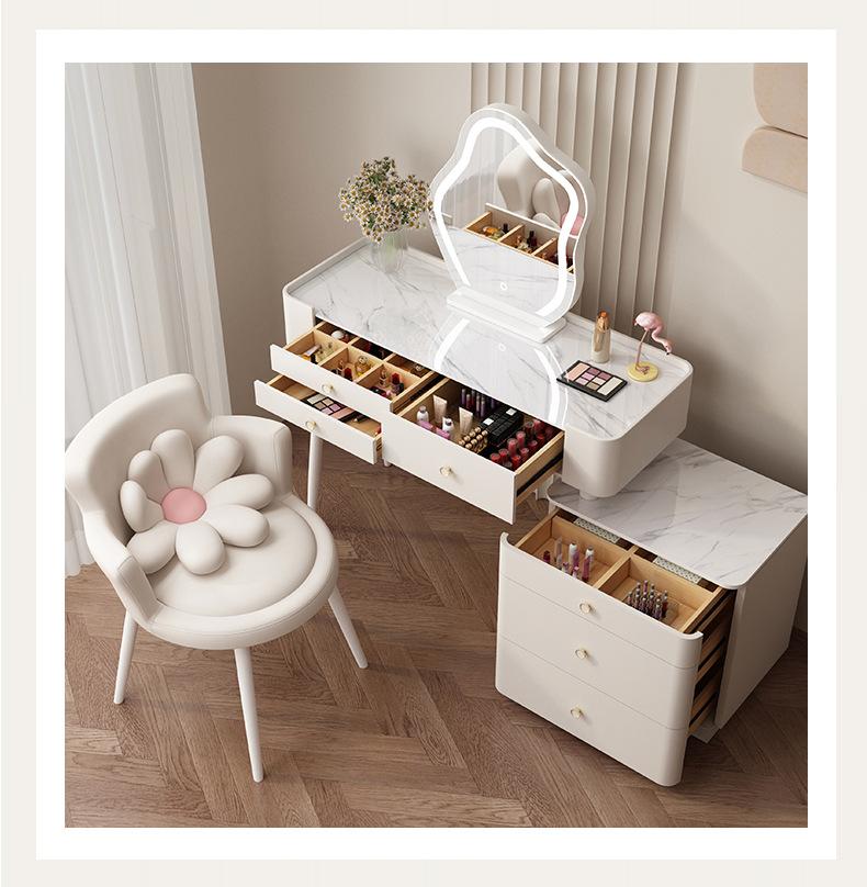 Tocador de dormitorio estilo crema, mueble cubo integrado, moderno, sencillo, para dormitorio principal, tocador ligero de lujo, mesa de maquillaje nórdica de madera maciza.