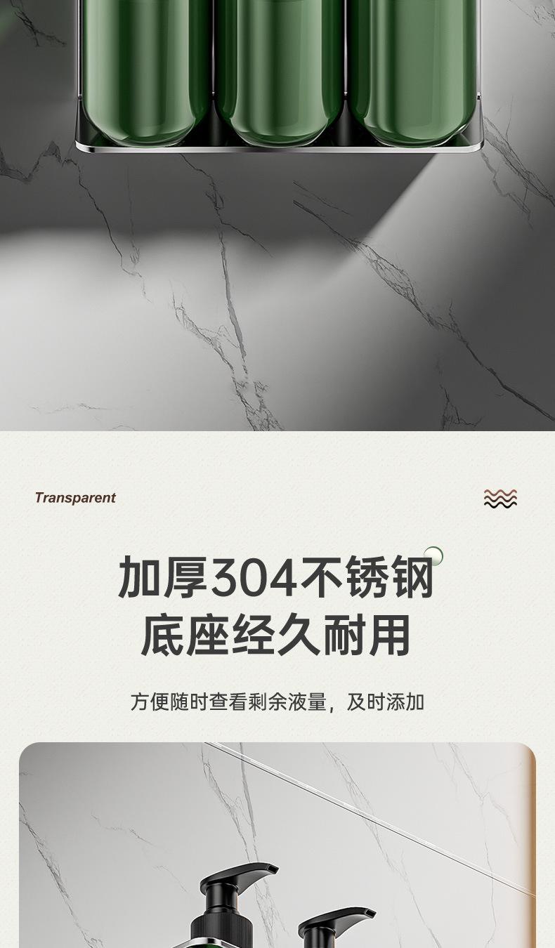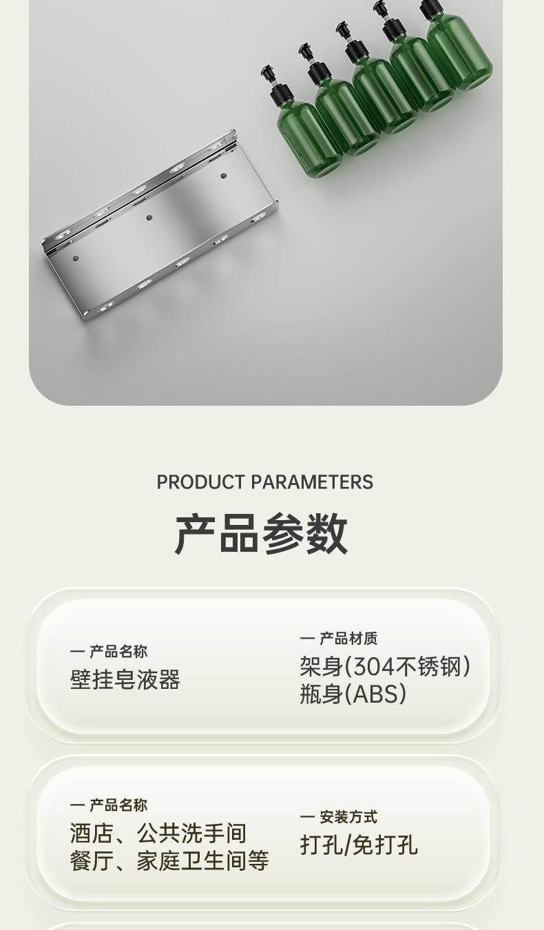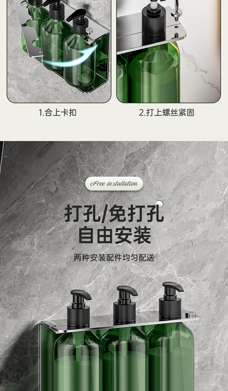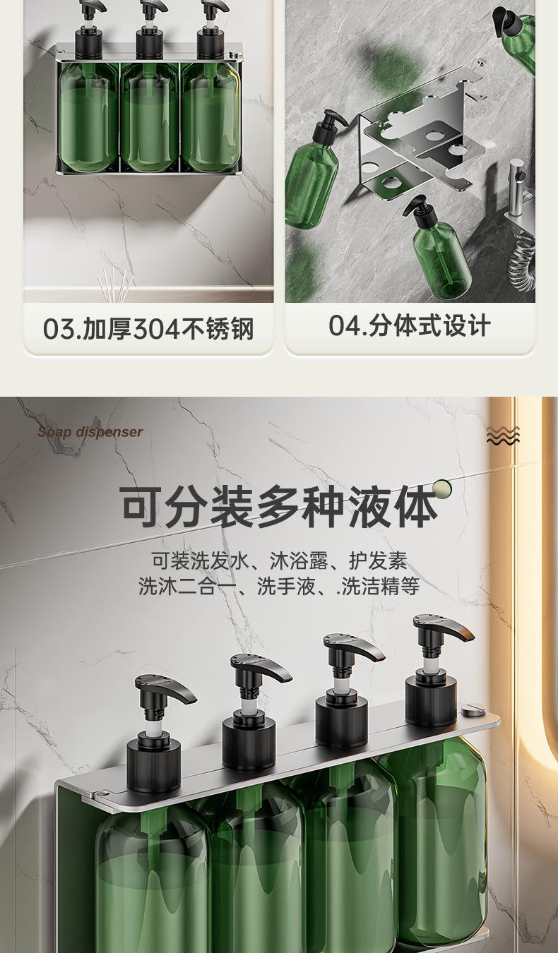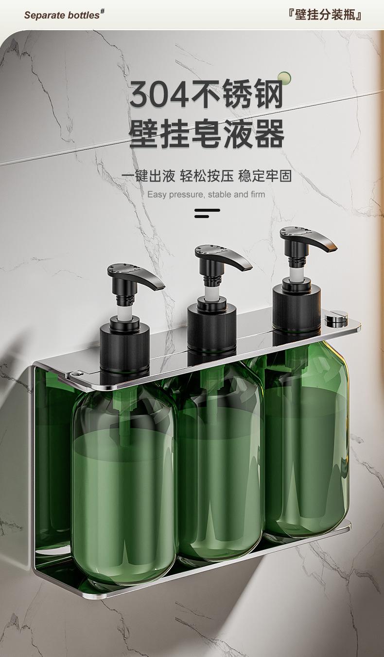 Dispensador de jabón de acero inoxidable 304, sin perforaciones, para baño de hotel, con prensa para champú, para pared, con borde transfronterizo.