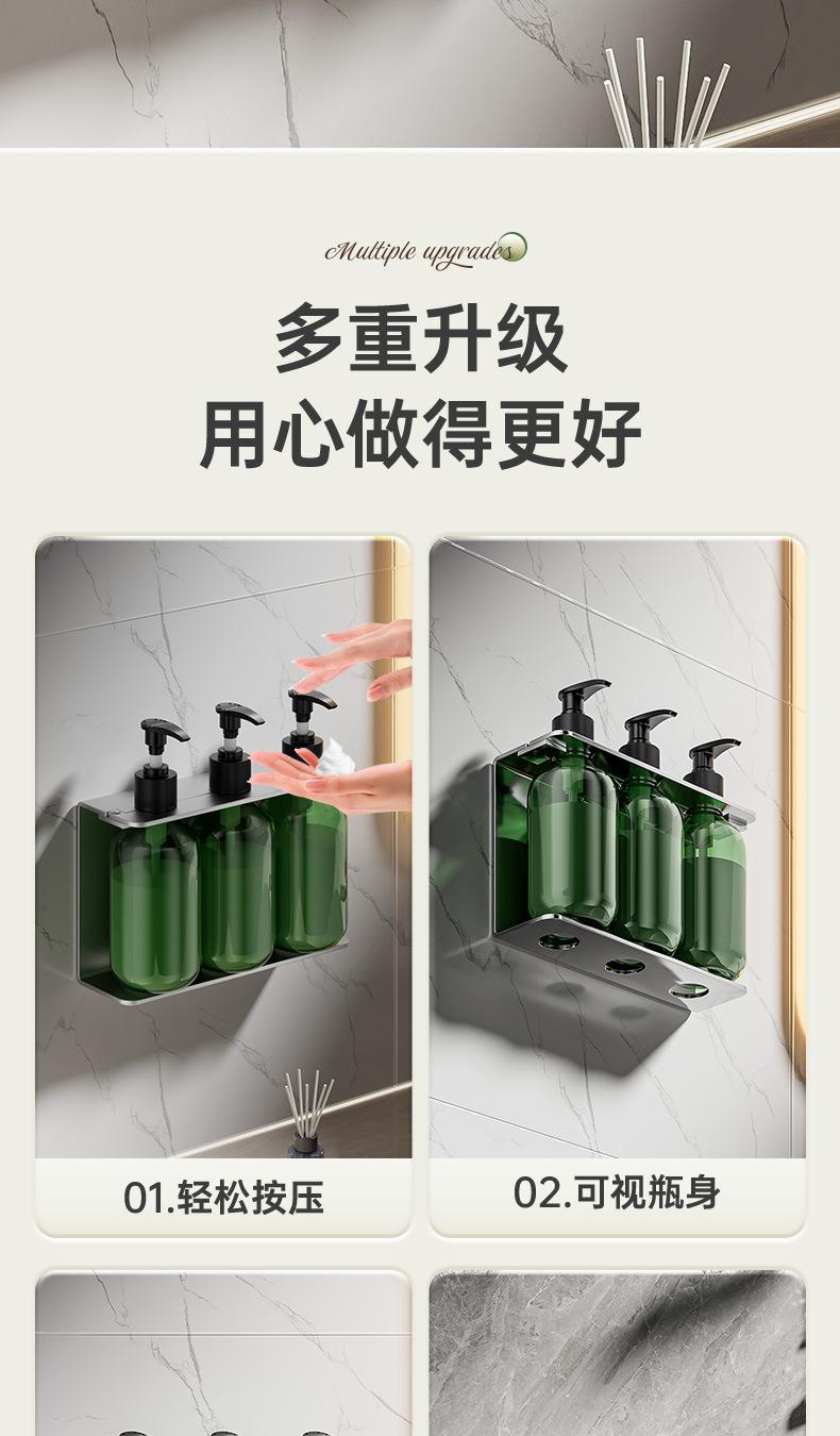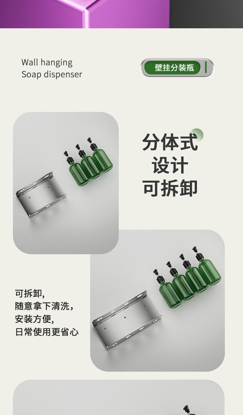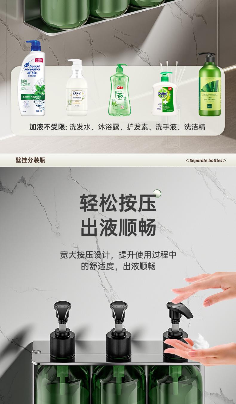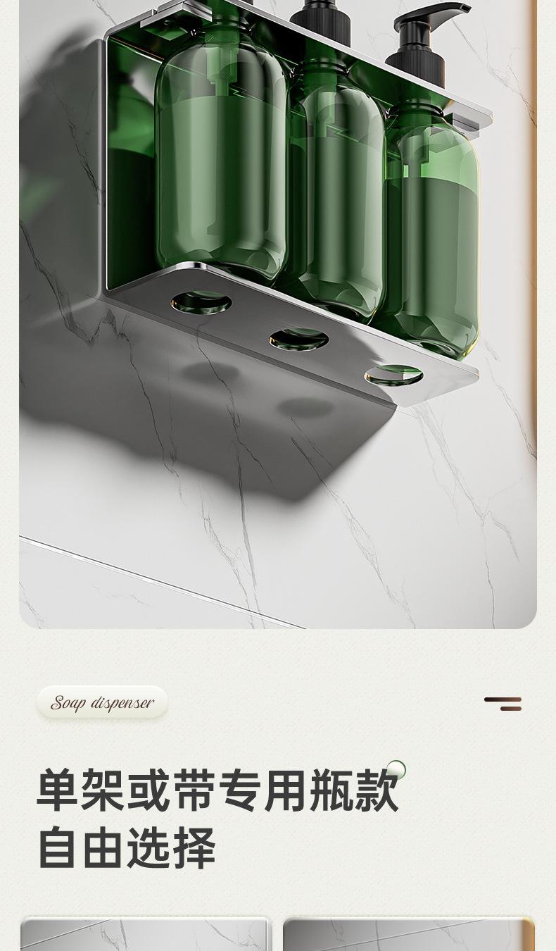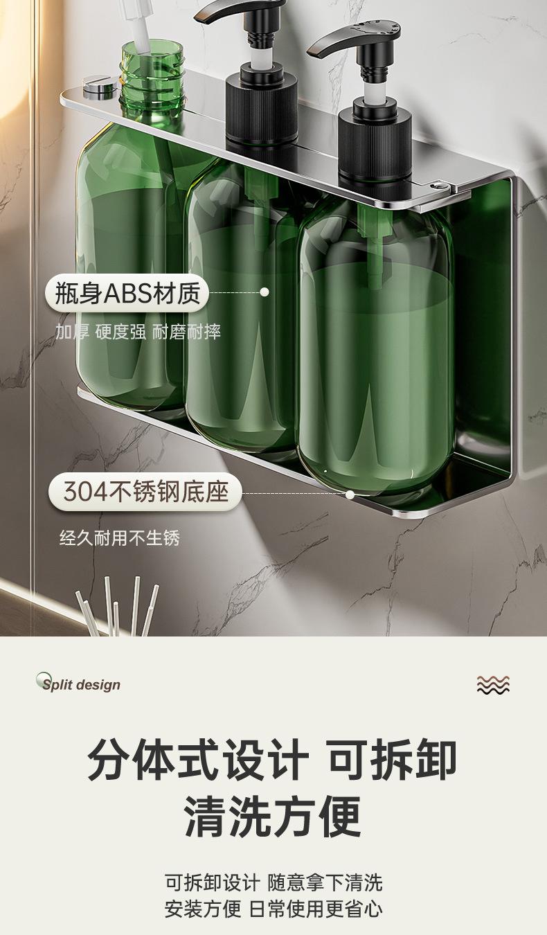 Dispensador de jabón de acero inoxidable 304, sin perforaciones, para baño de hotel, con prensa para champú, para pared, con borde transfronterizo.