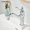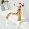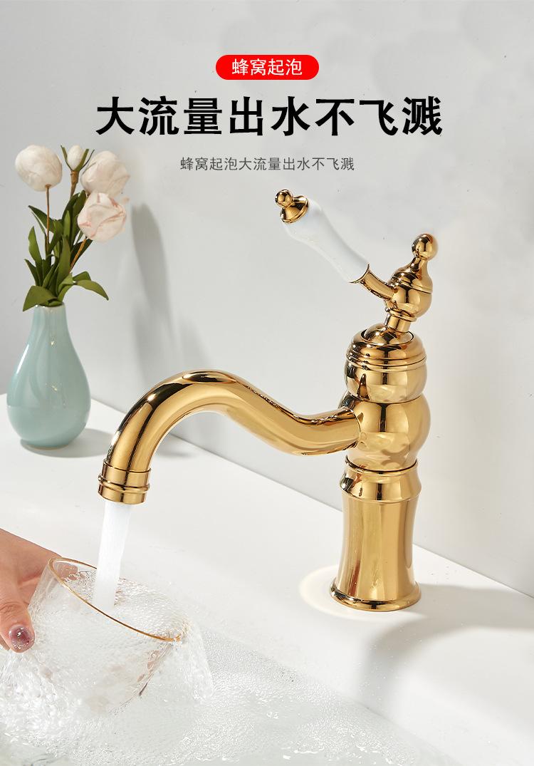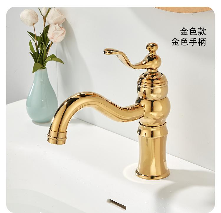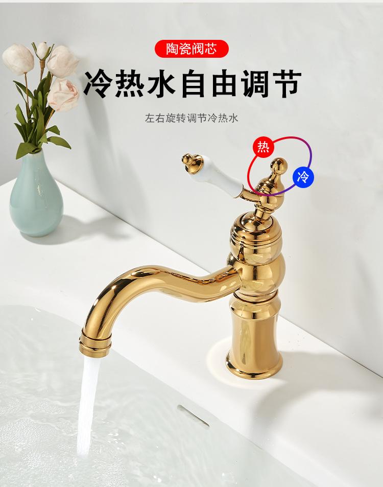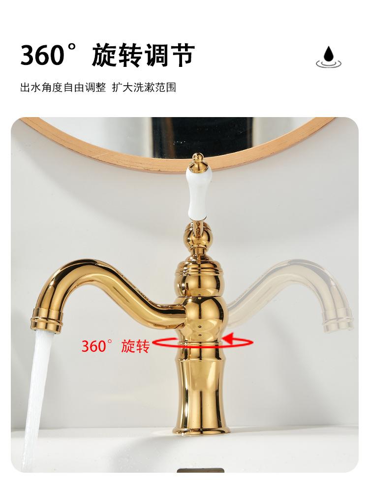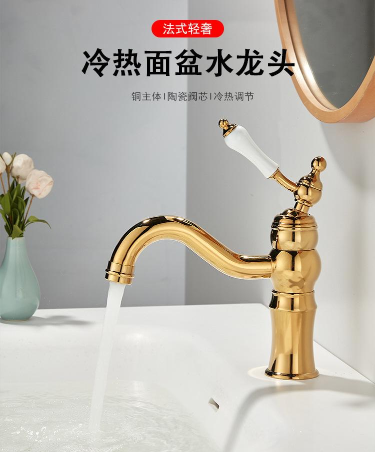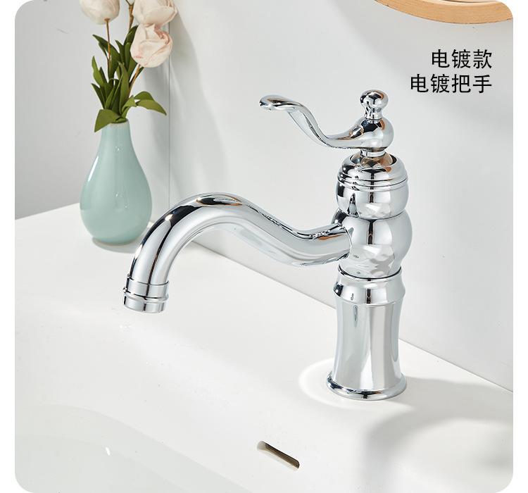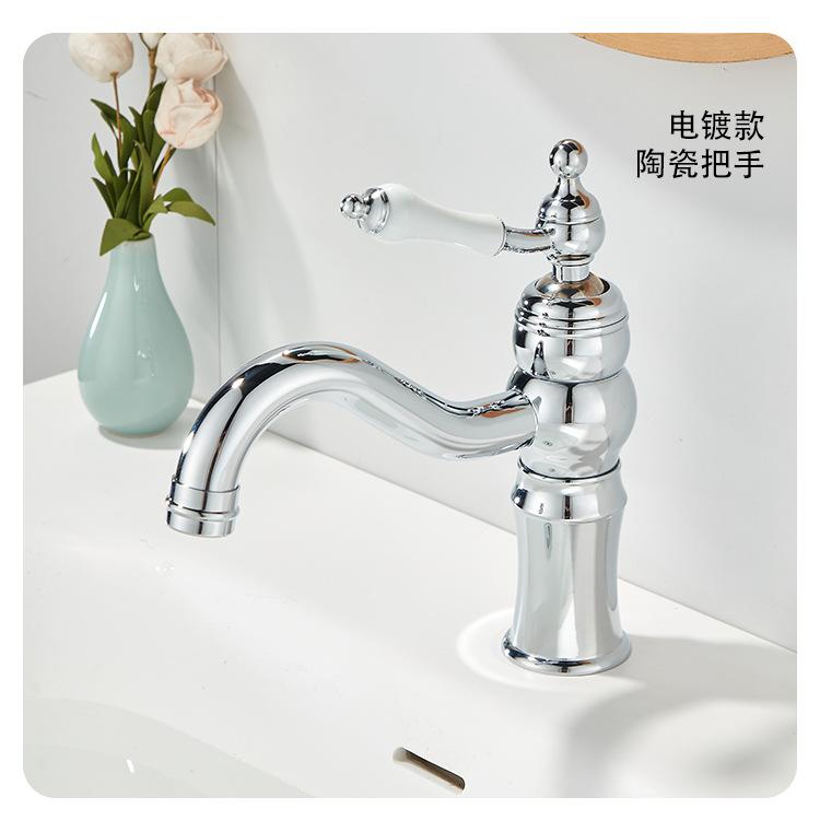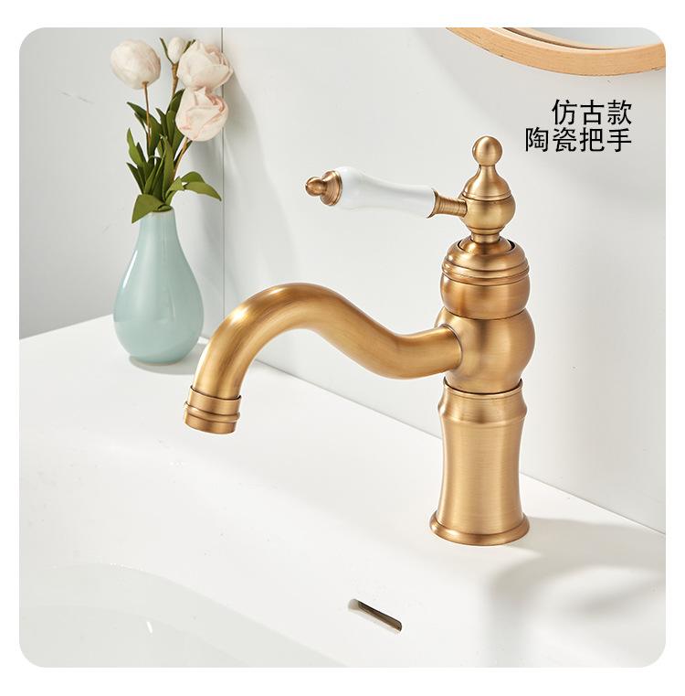 Grifo de Lavabo Retro Francés de Lujo Ligero para Gabinete de Baño de Orificio Único, Latón, Grifo Frío y Caliente a Prueba de Salpicaduras