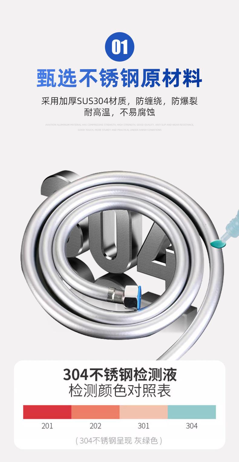 Manguera de ducha de tuerca 304 a prueba de explosiones de PVC plateado, boquilla de ducha, tubo de entrada de agua de 1,5 m