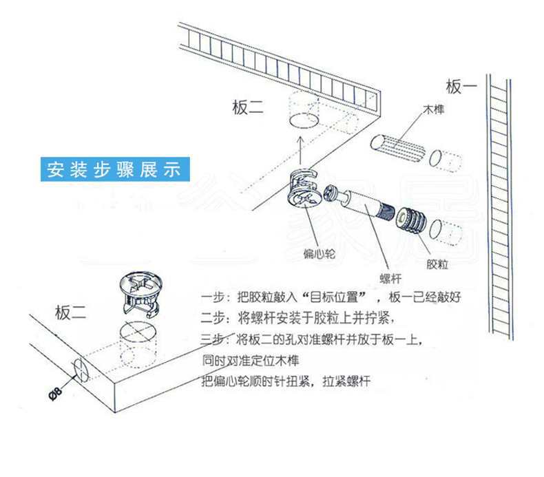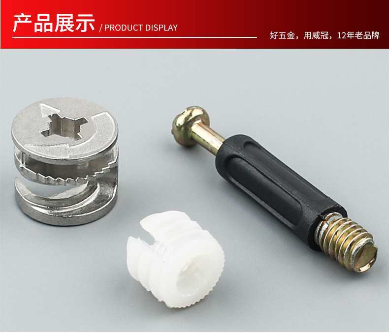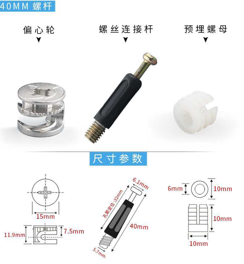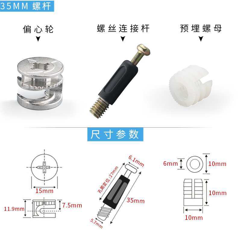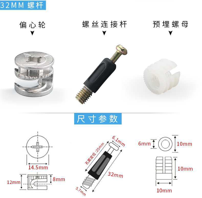 Herraje de fijación de tornillo conector de montaje al por mayor, rueda excéntrica de tuerca tres en uno, herraje de fijación de muebles para armario