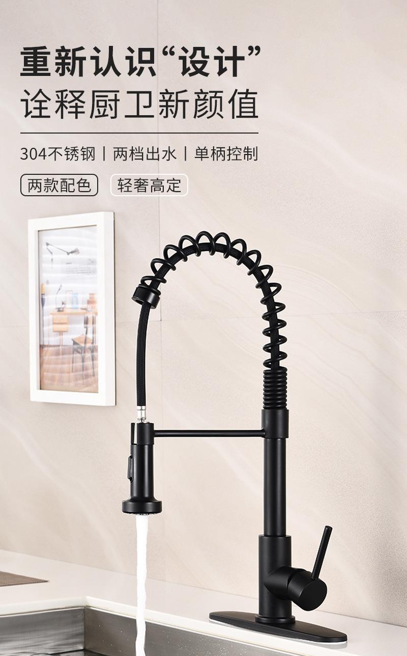 Grifo de cocina con resorte de acero inoxidable 304 transfronterizo, para fregadero doméstico, para lavabo de verduras, grifo a prueba de salpicaduras de agua fría y caliente