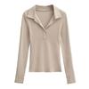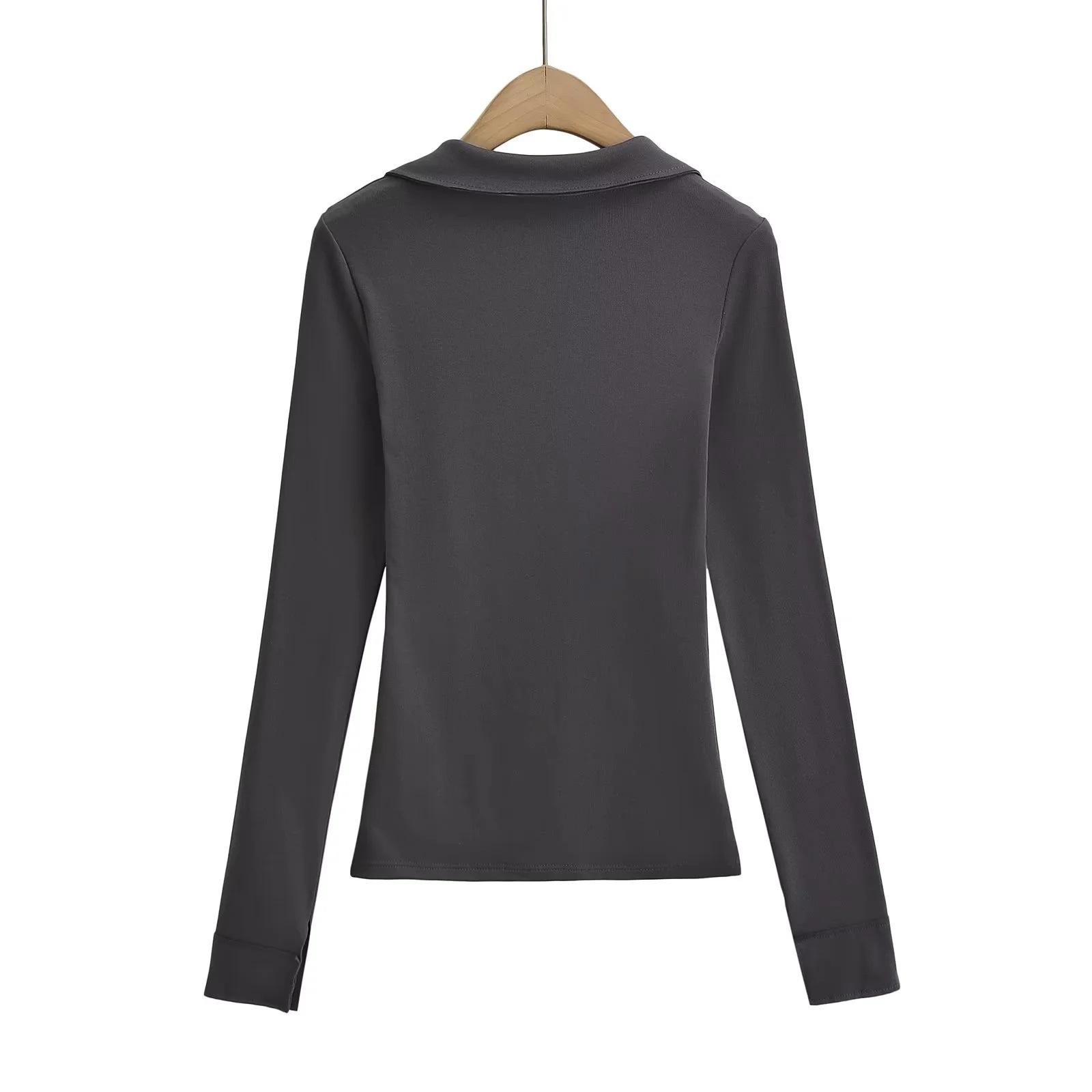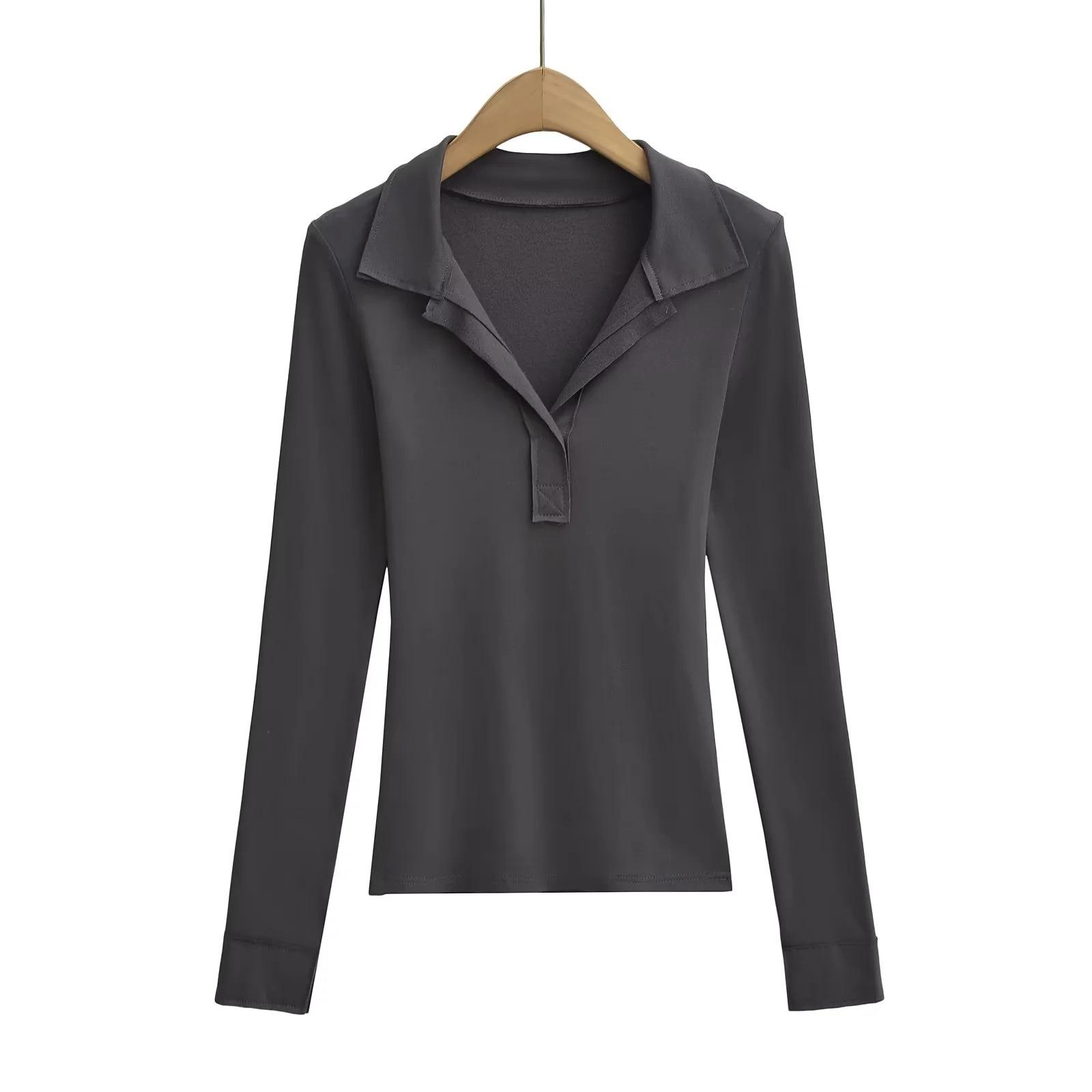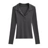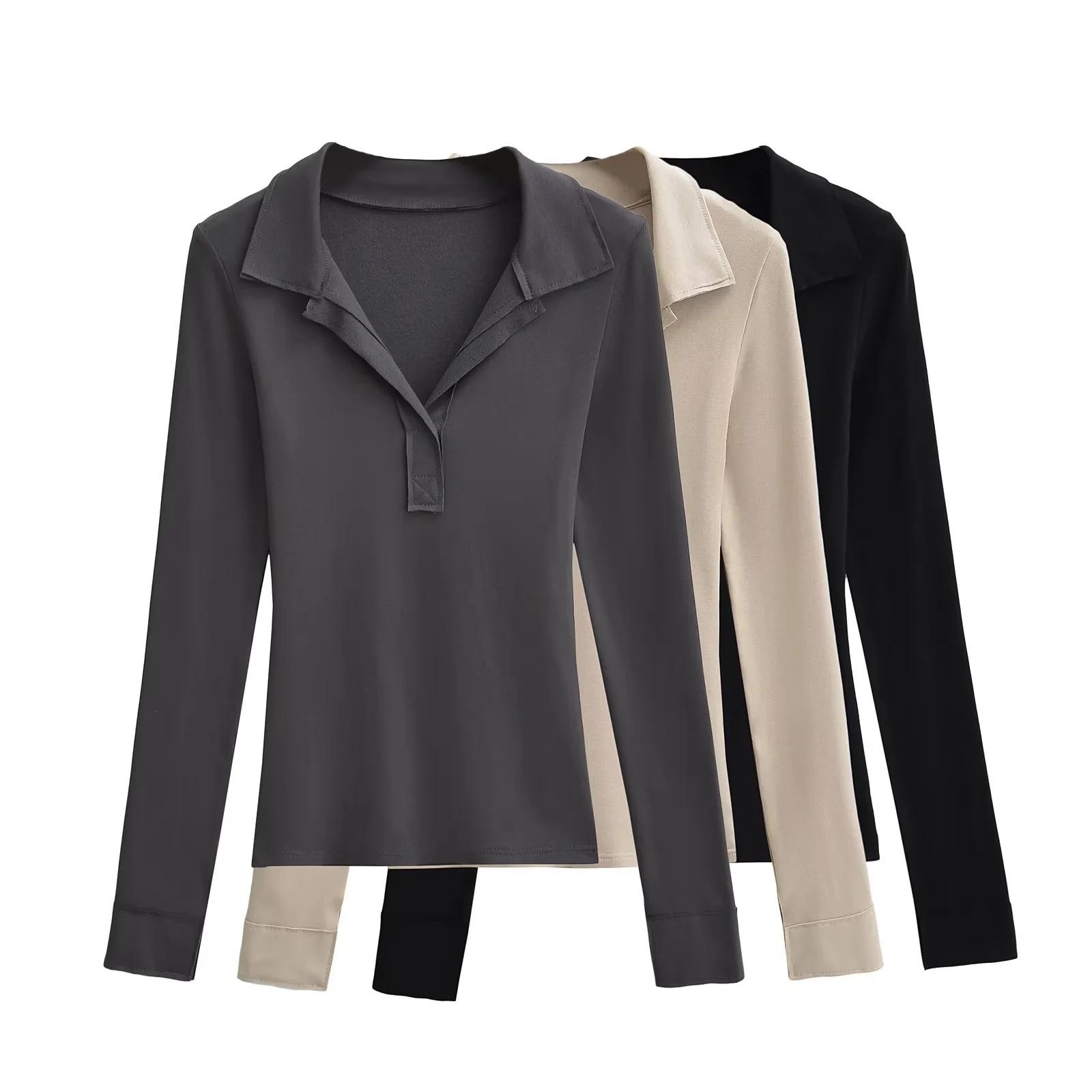 2024 principios de primavera ropa interior ropa exterior corte entallado sexy diseño de camisa de fondo plisado cuello en V adelgazante manga larga t