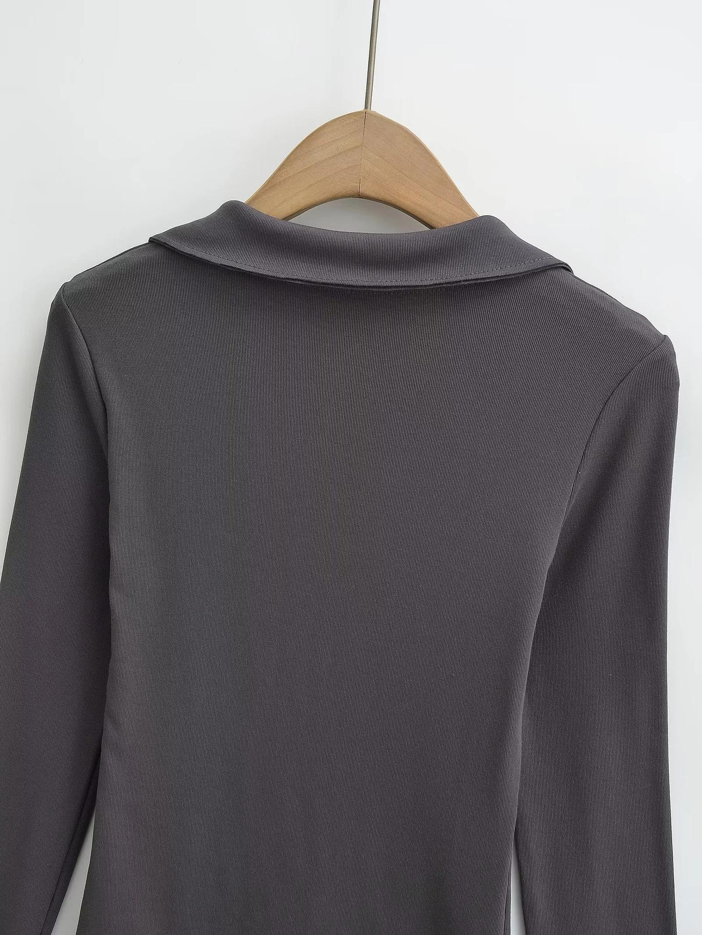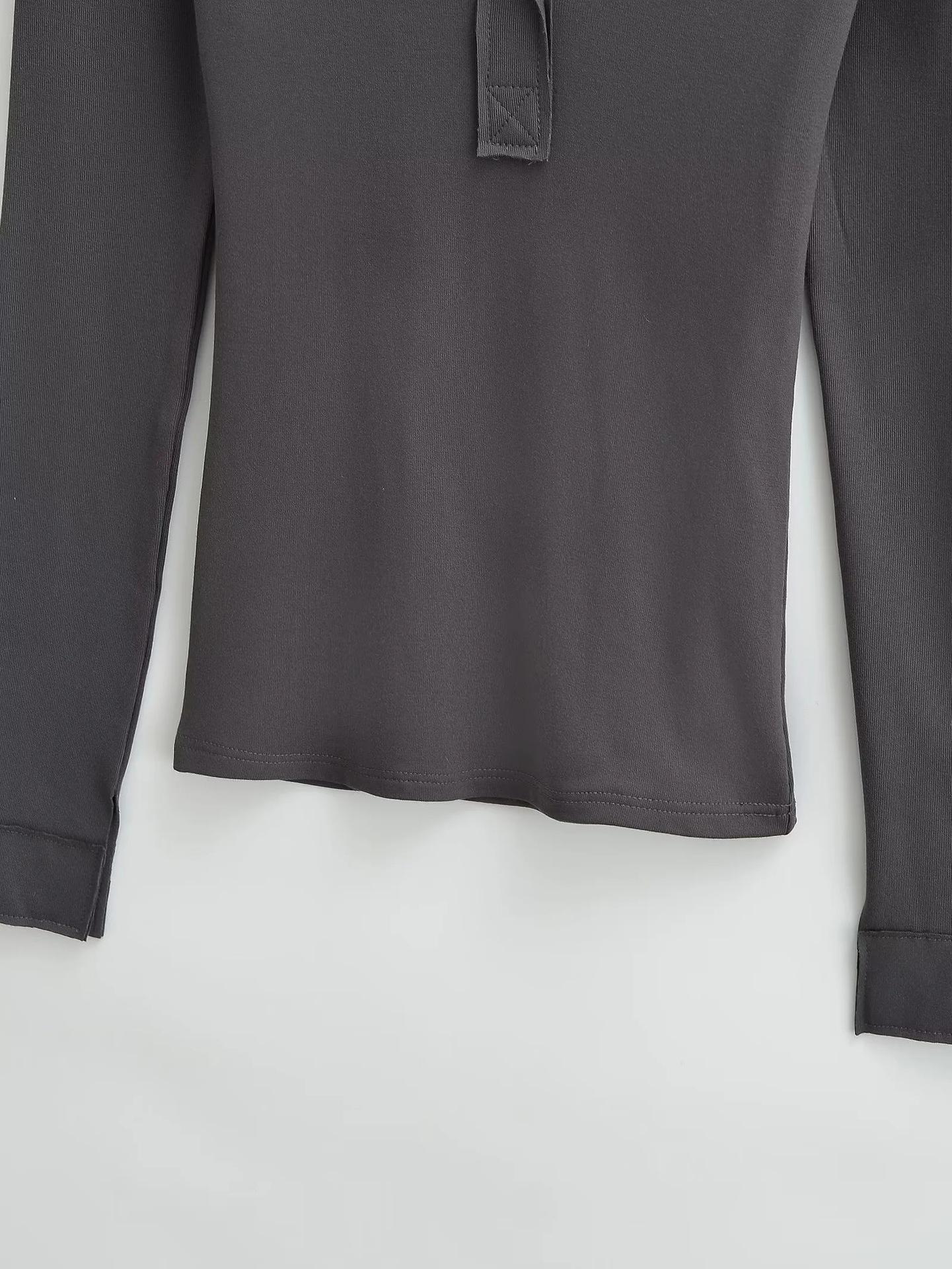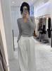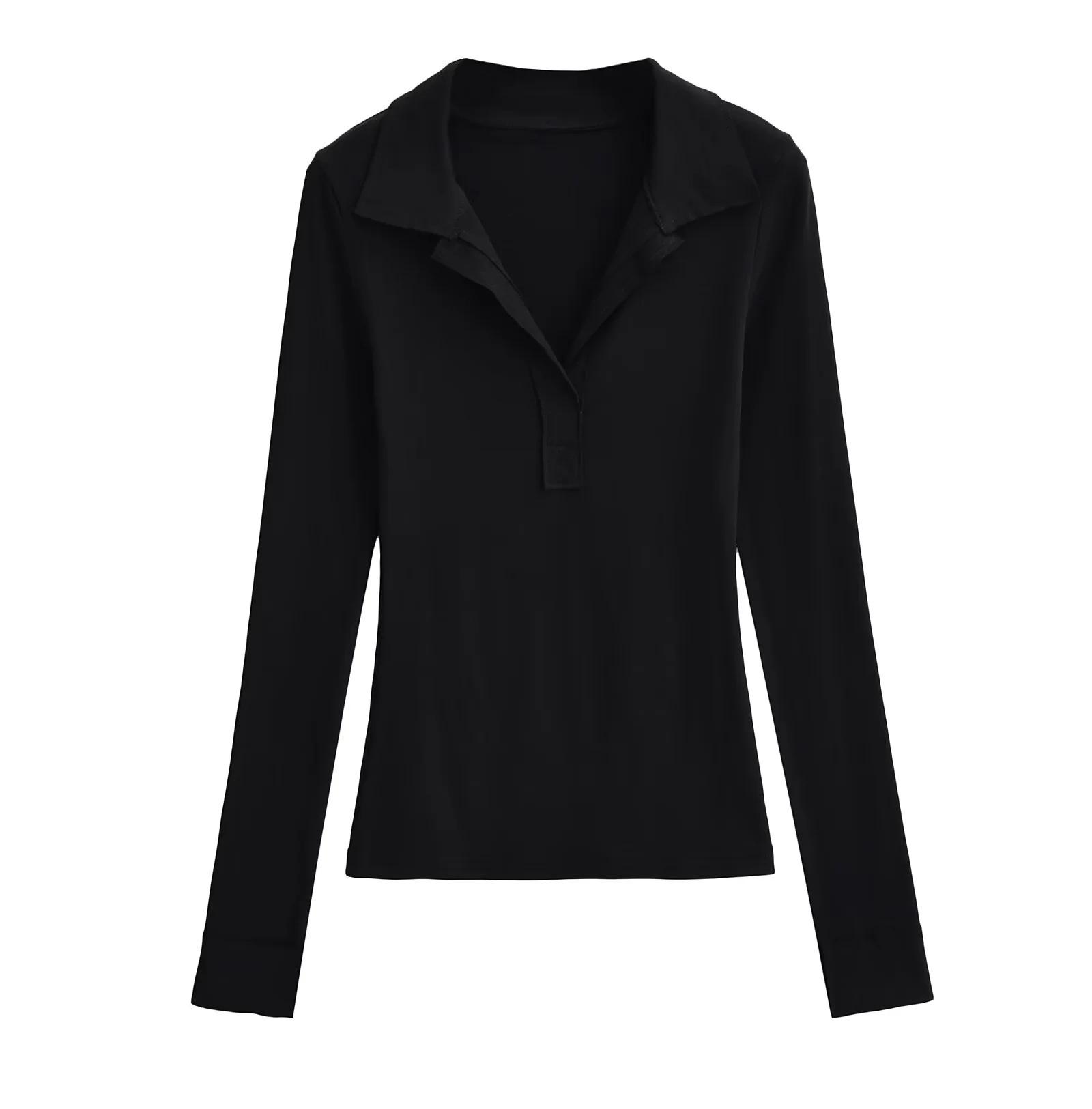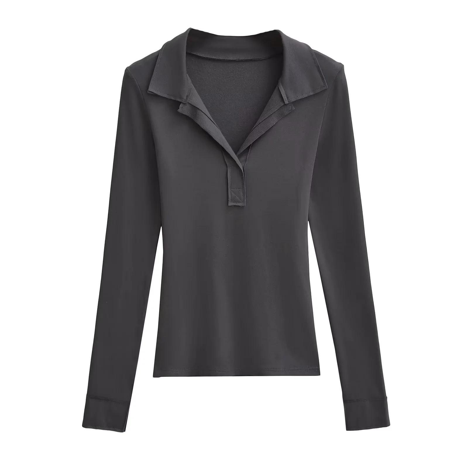 2024 principios de primavera ropa interior ropa exterior corte entallado sexy diseño de camisa de fondo plisado cuello en V adelgazante manga larga t