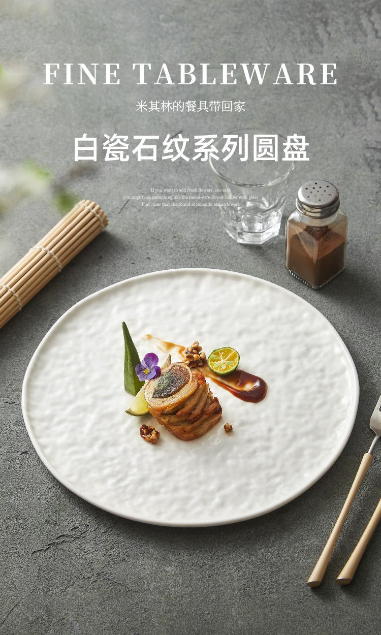 Plato de Cerámica con Patrón de Piedra Plato para Comida Occidental Plato para Bistec Plato para Vajilla Doméstica Plato Redondo Moderno y Simple Plato Hondo Vajilla Creativa Especial