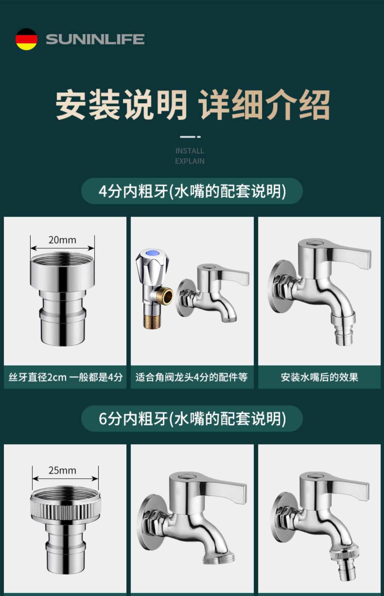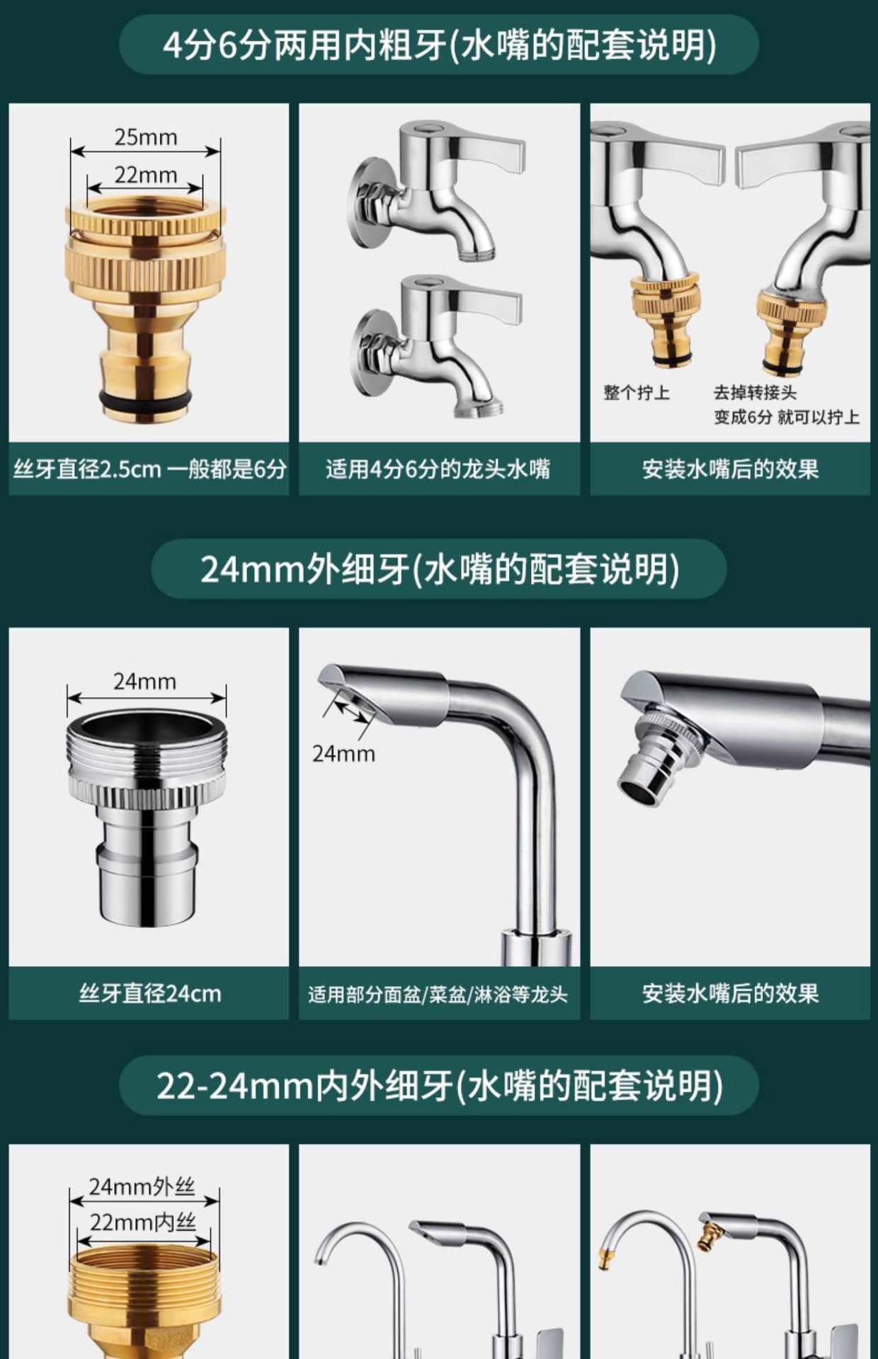 Conector de grifo de lavadora de cobre al por mayor, adaptador de boquilla de agua, cabezal de conversión de 4 puntos, interfaz de tubería de entrada