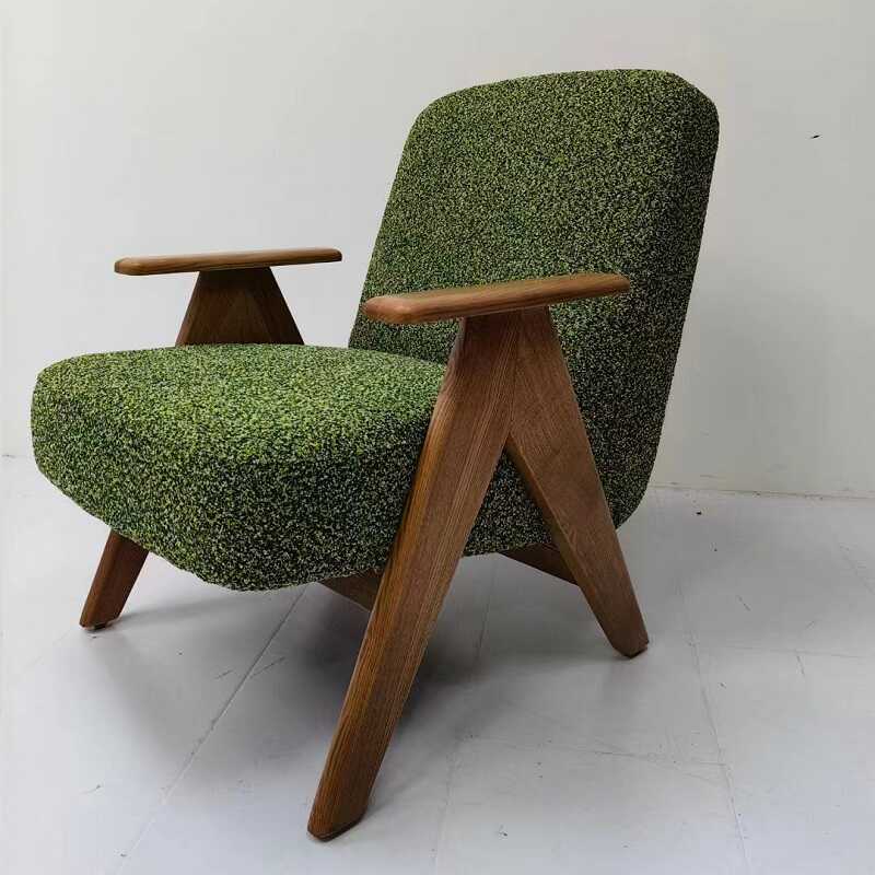 Compra Sillón de diseño español para salón, de madera maciza, con reposabrazos y un solo vellón. al por mayor en Joom.pro