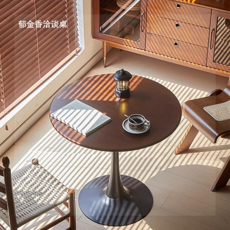Zy Mesa Redonda Antigua de Madera Maciza Mesa de Comedor para Apartamento Pequeño Silla Redonda Balcón Café Bar Escritorio Nogal Tulipán