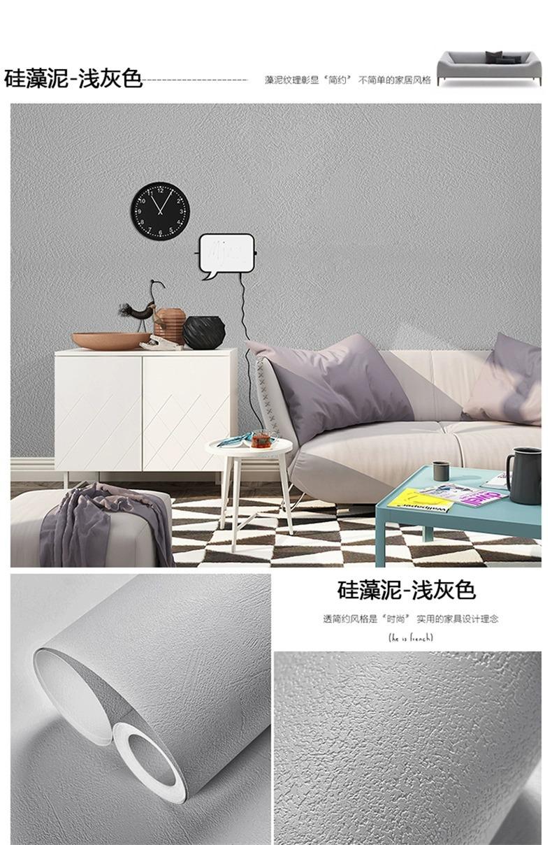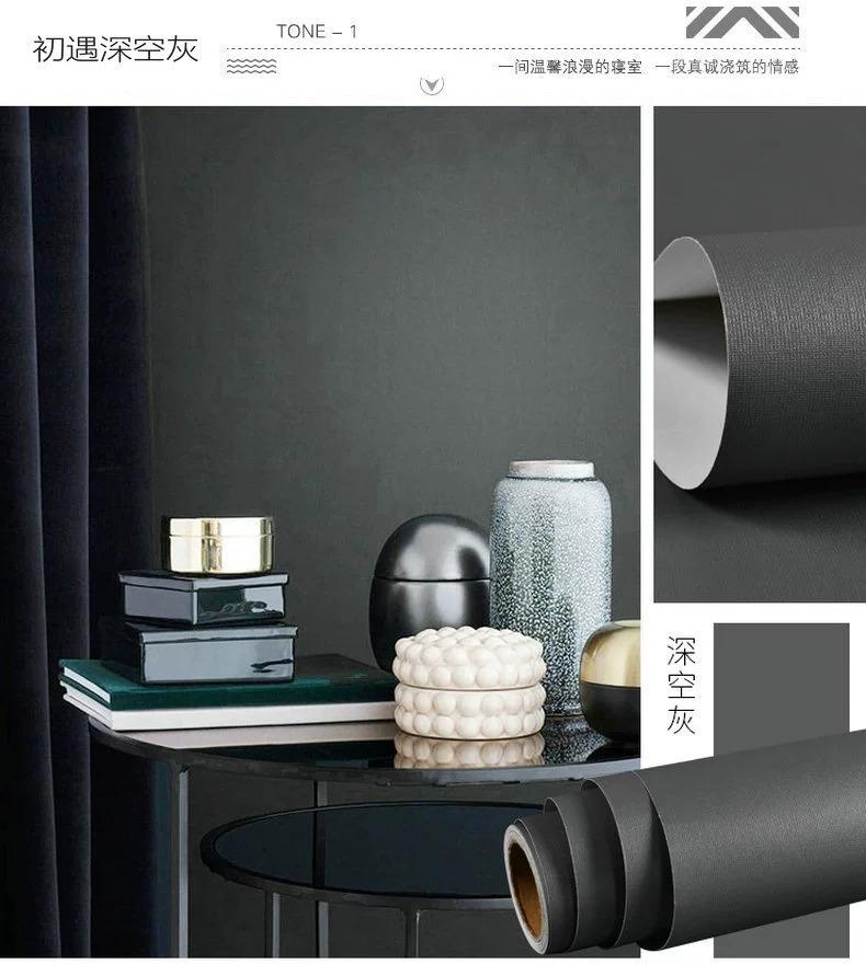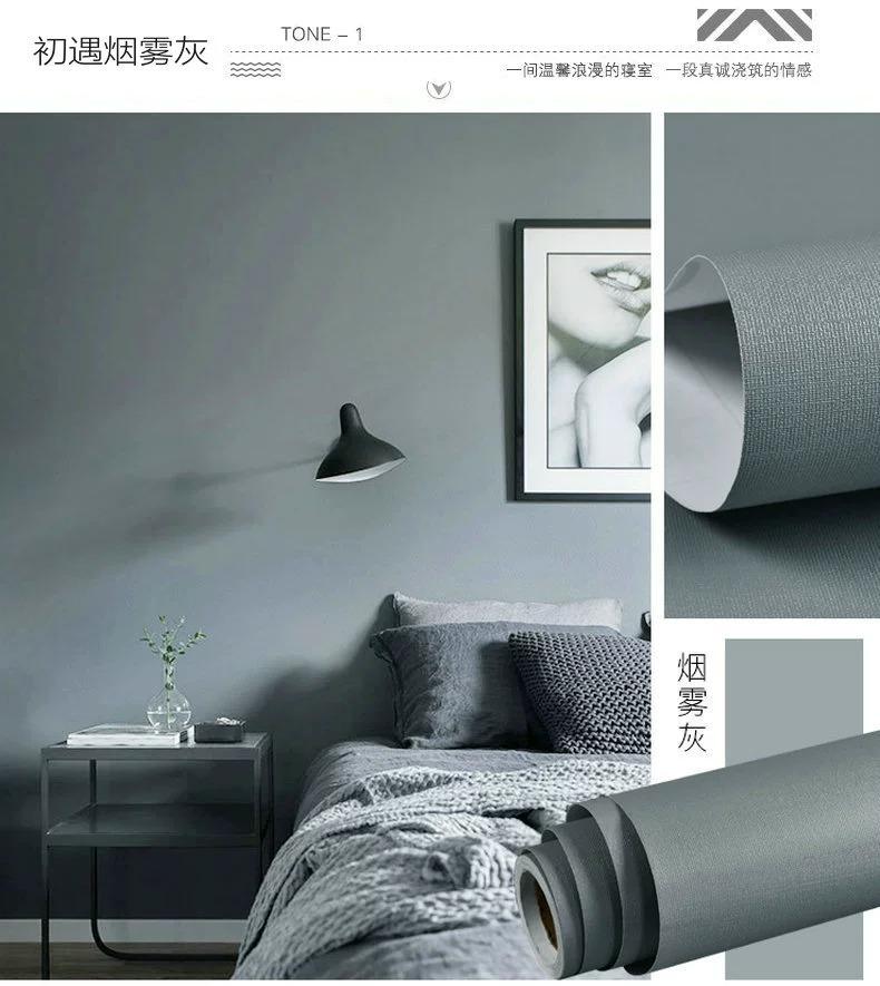 Papel Tapiz Gris Autoadhesivo Dormitorio Cálido Sala de Estar Fondo de Pared para TV Decoración del Hogar Color Puro