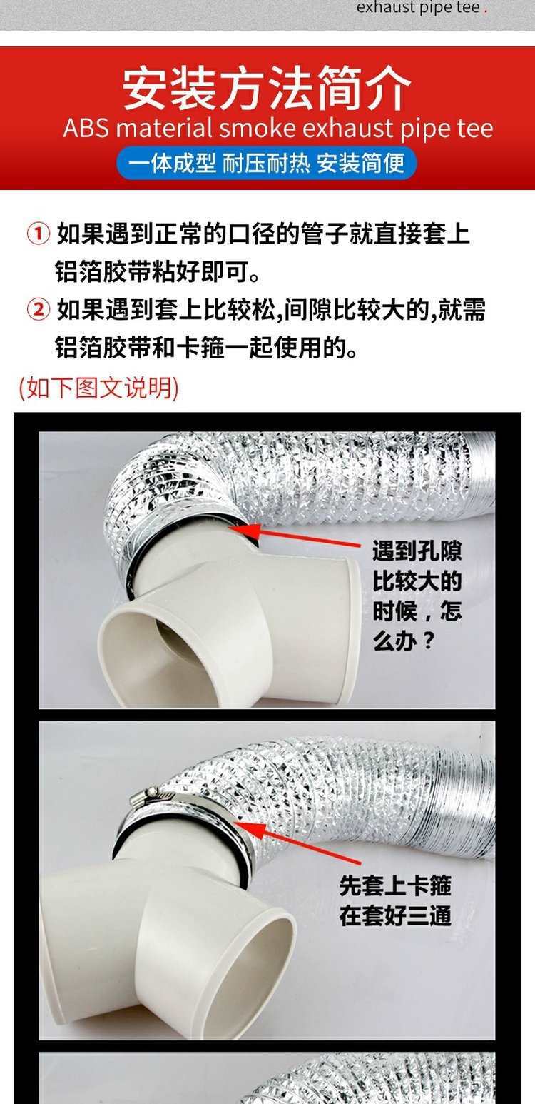 Tee de escape al por mayor tubo de plástico papel de aluminio junta de tubo de ventilación derivación de ventilación tres interruptores manguera interfaz tipo Y 100