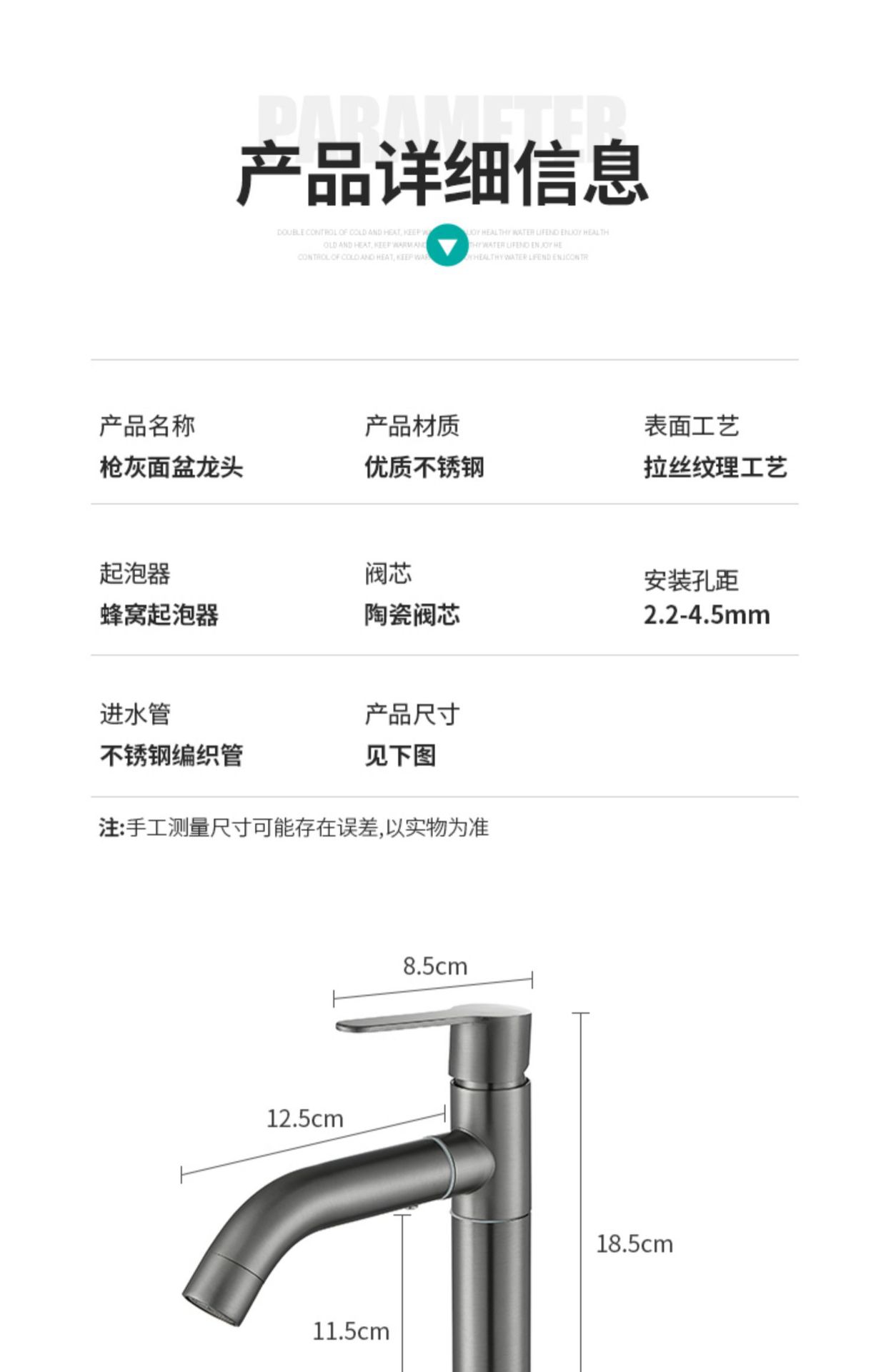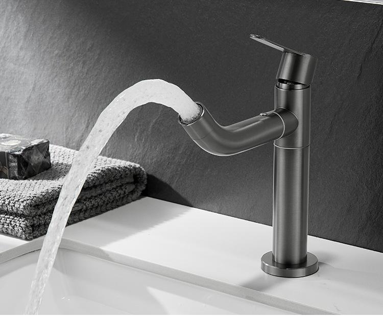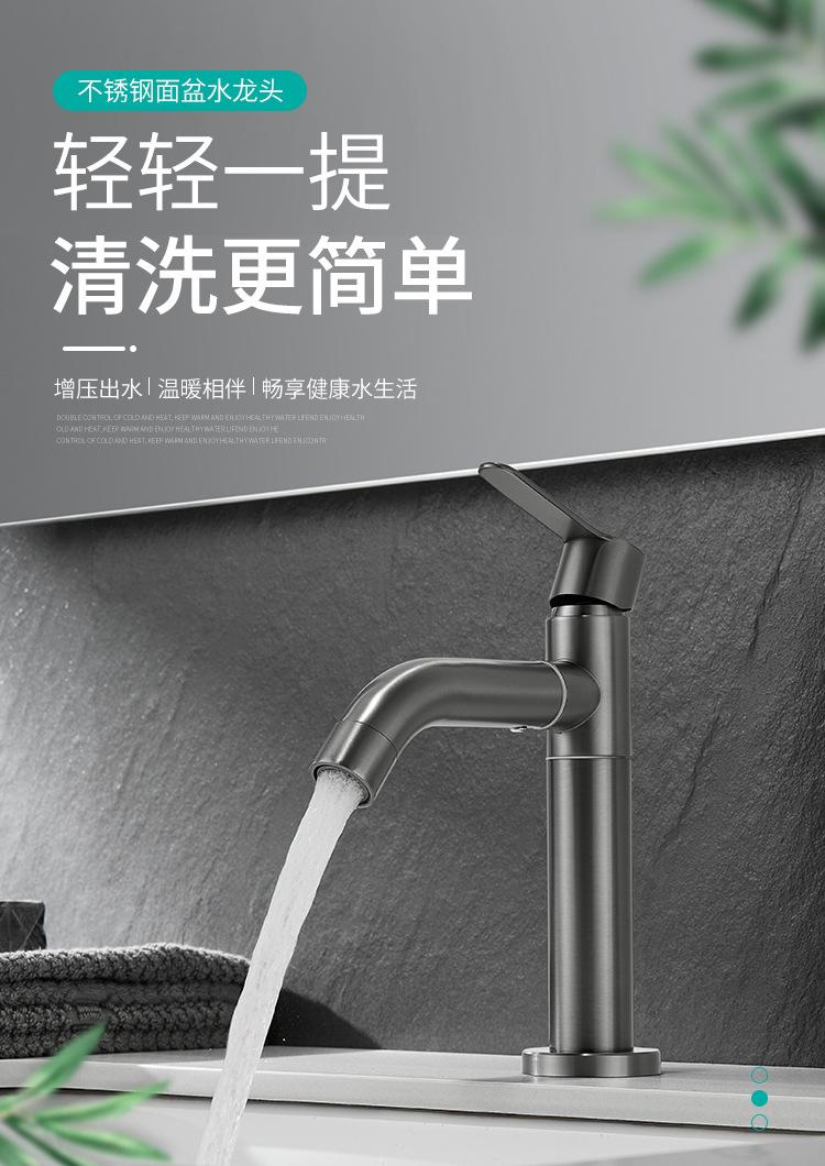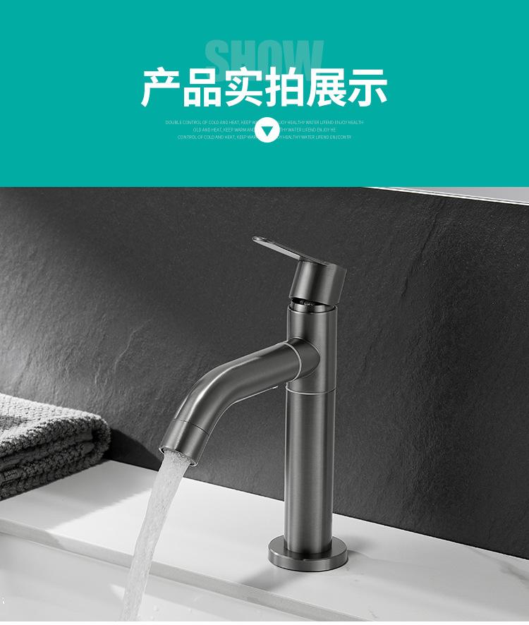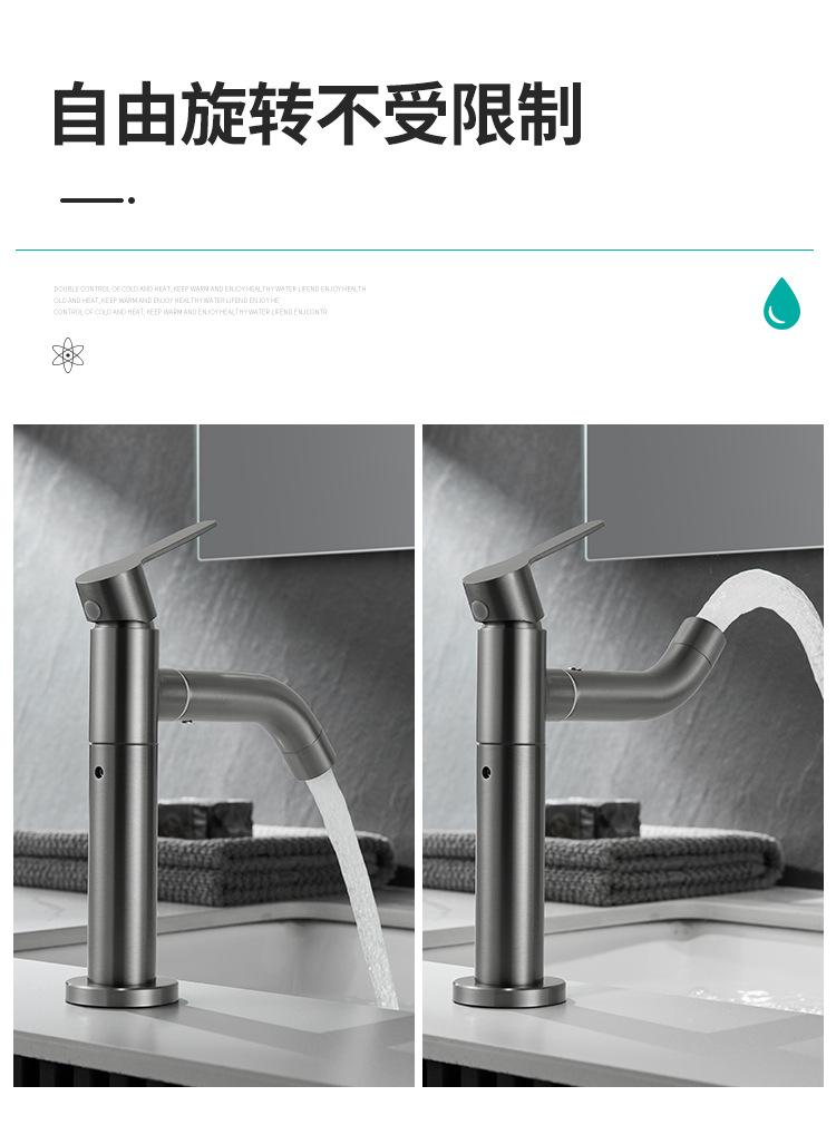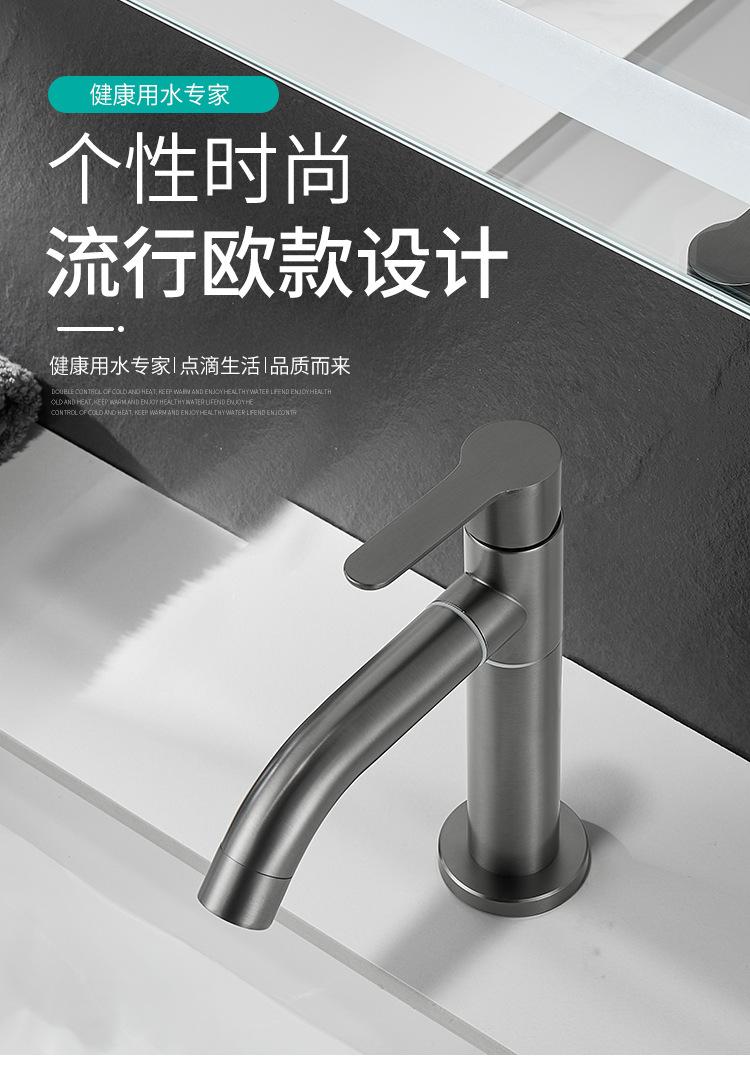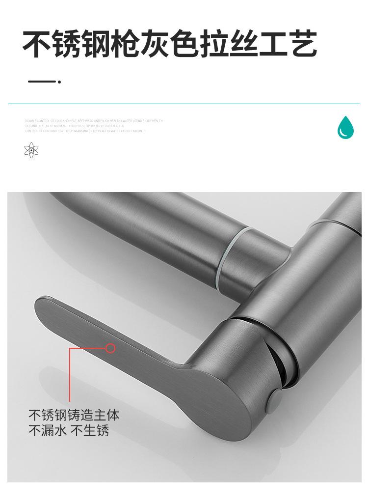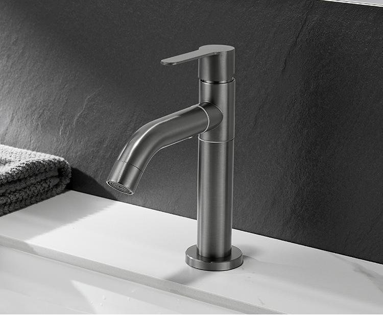 Grifo Monomando de Lavabo Frío Acero Inoxidable Gris Plomo Giratorio Universal Lavabo Baño Lavabo Hogar