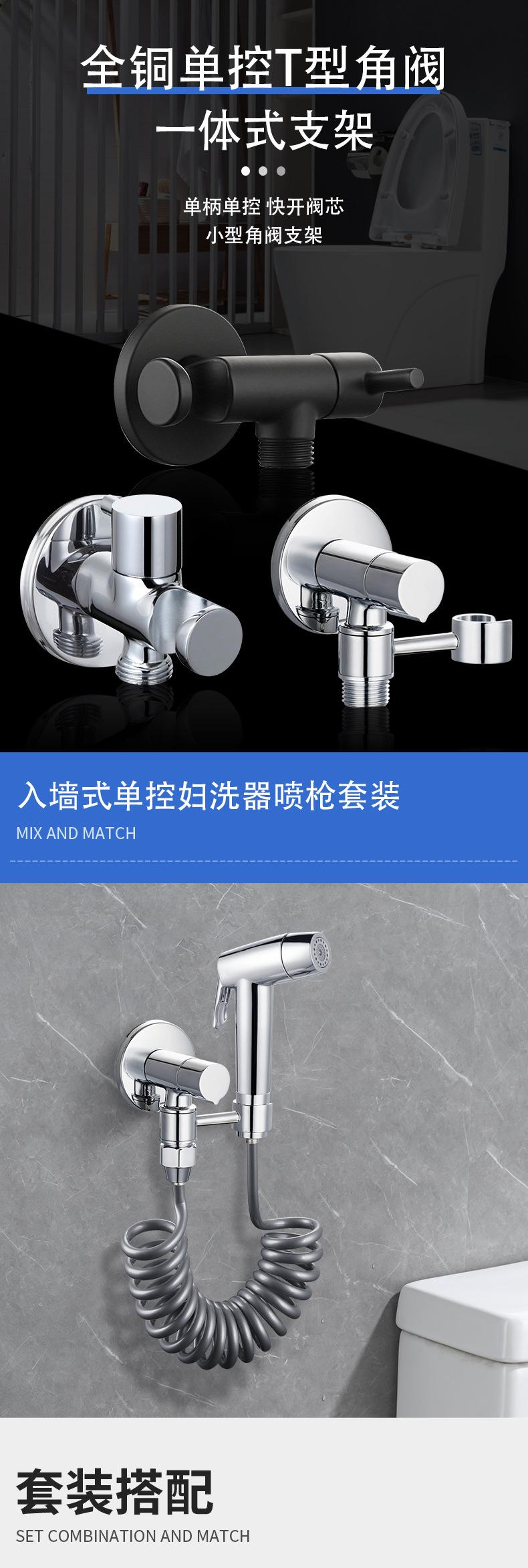 Válvula de ángulo de control único de cobre puro uno dentro uno fuera de gran flujo salida de pared simple fría y caliente válvula de triángulo núcleo de válvula de control de pistola rociadora para inodoro