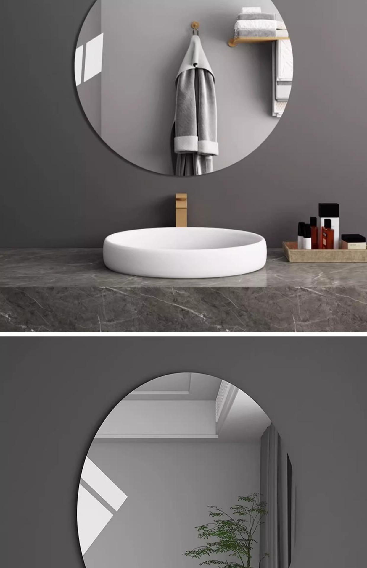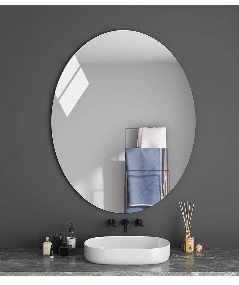 Espejo de Lavabo de Baño de Estilo Simple Especial Sin Perforaciones Espejo de Maquillaje Espejo Ovalado de Baño Montado en la Pared