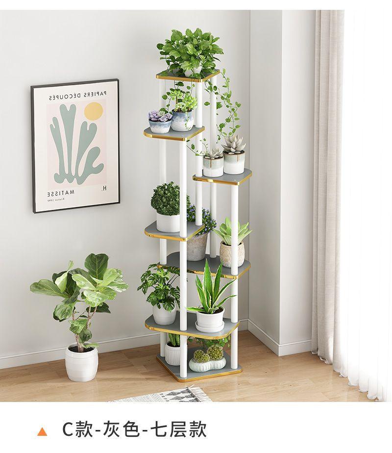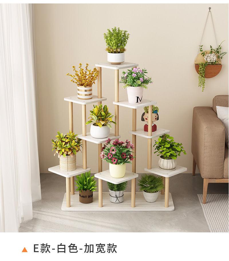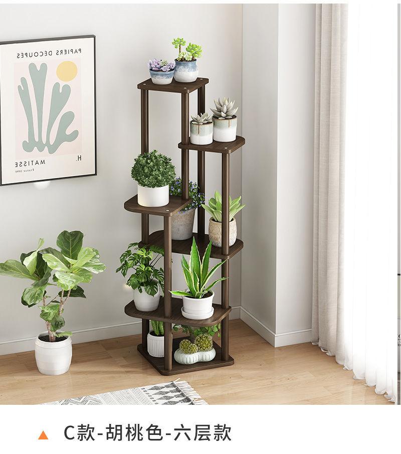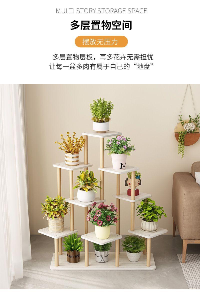 Estante para flores de madera maciza para interiores y hogares, para balcón, rosa verde carnosa, mesa de flores de piso a piso, estante para macetas.