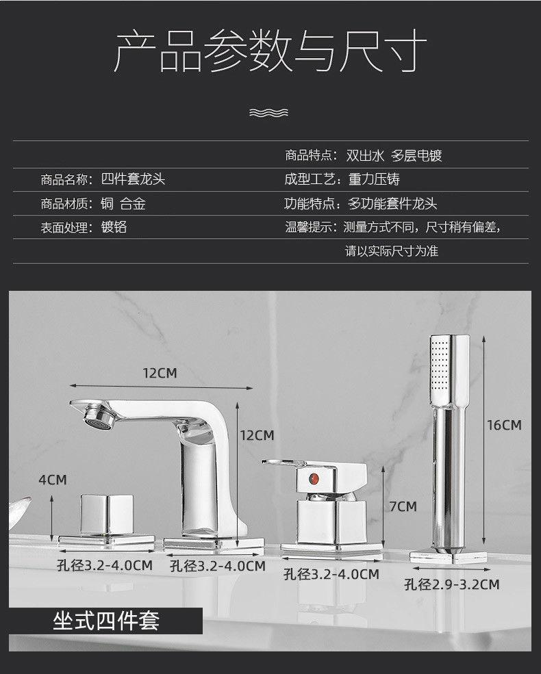 Grifo de lavabo de agua fría y caliente, apto para lavabo, grifo poroso, cabezal de ducha de mano, mueble de baño, juego de cuatro piezas