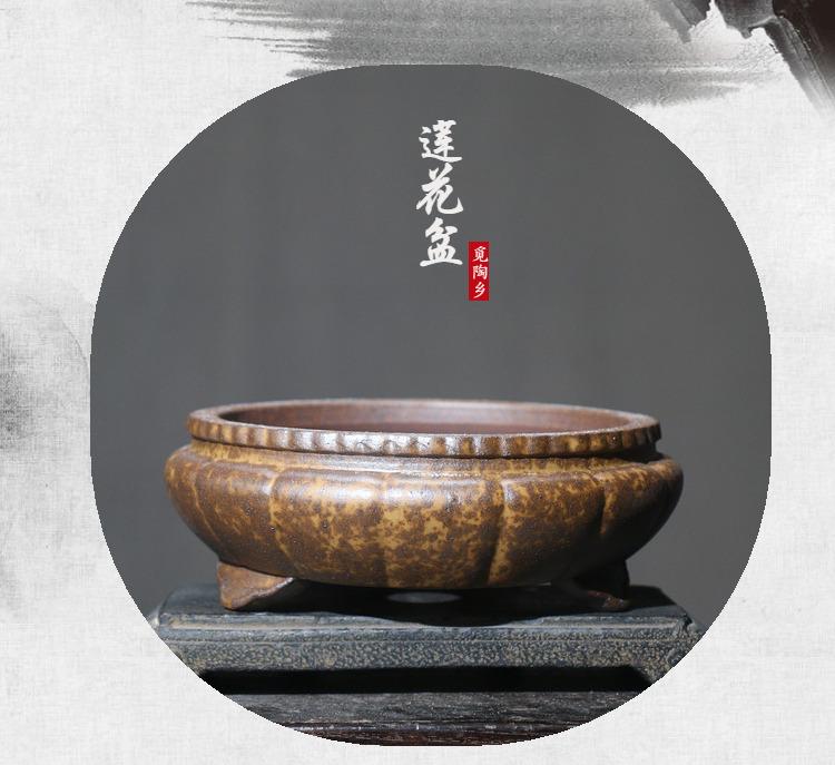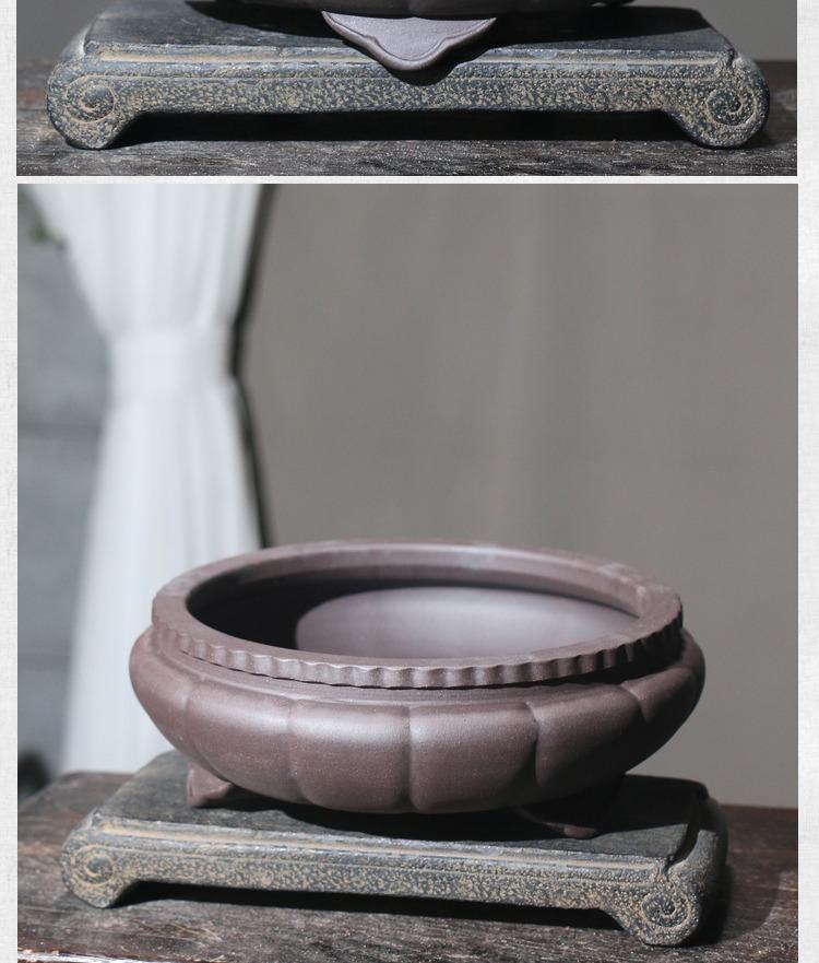 Maceta de arena morada con forma de loto para bonsái, cuenco para leña, imitación zen, estilo clásico, de escritorio, transpirable, estilo municipio de Mitao.