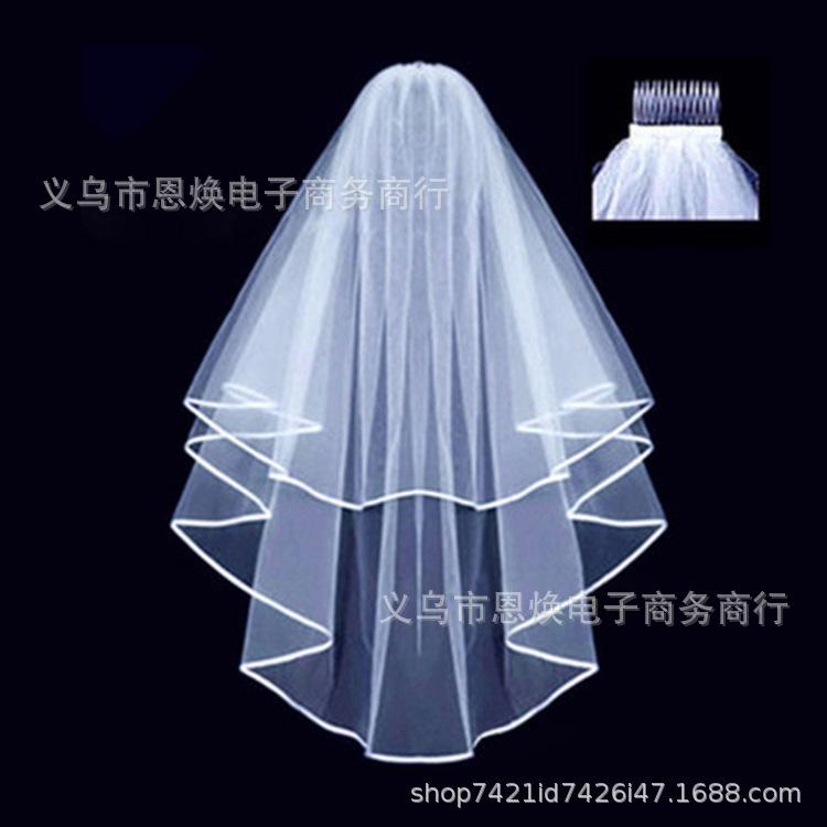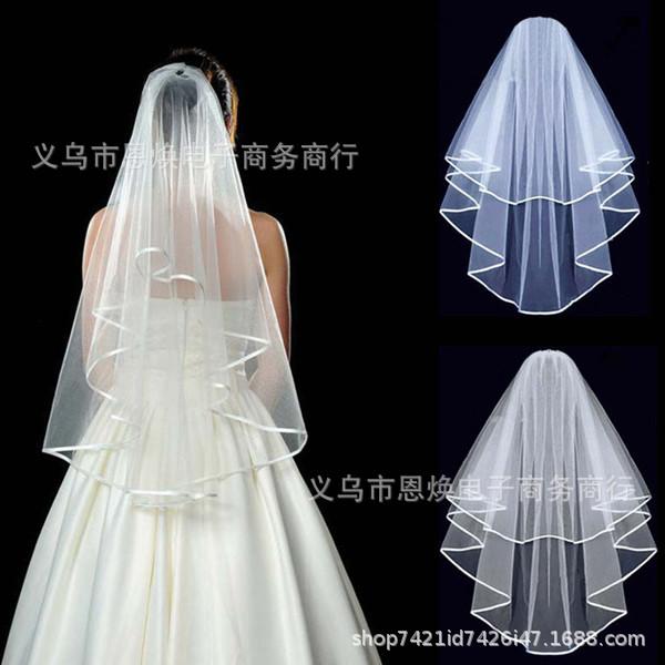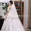 Velo de Novia Encaje Cinturón de Etiqueta Nupcial Doble Capa Traje de Boda Tirante para Hombro con Estilo Elegante