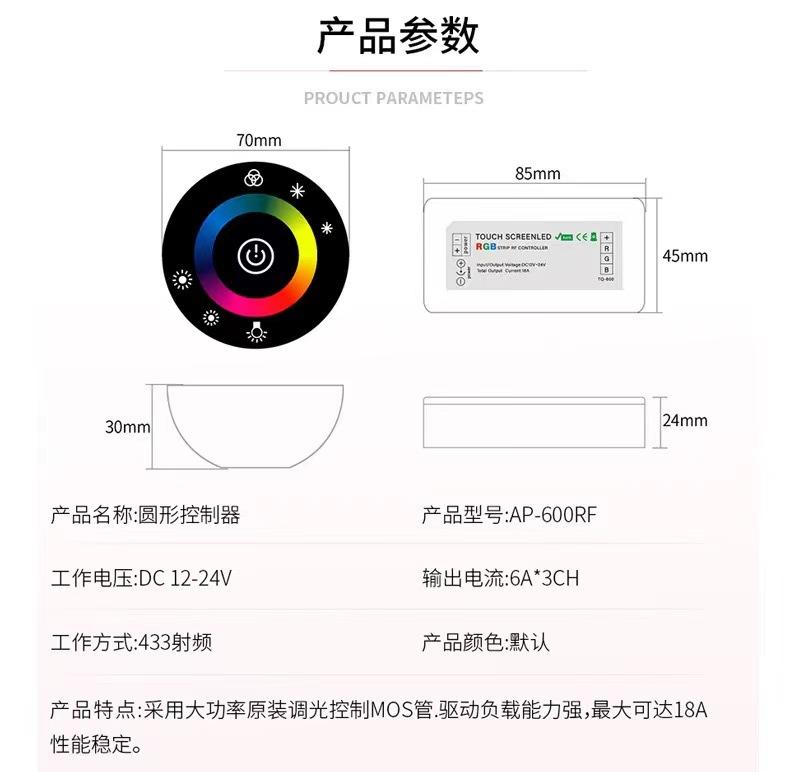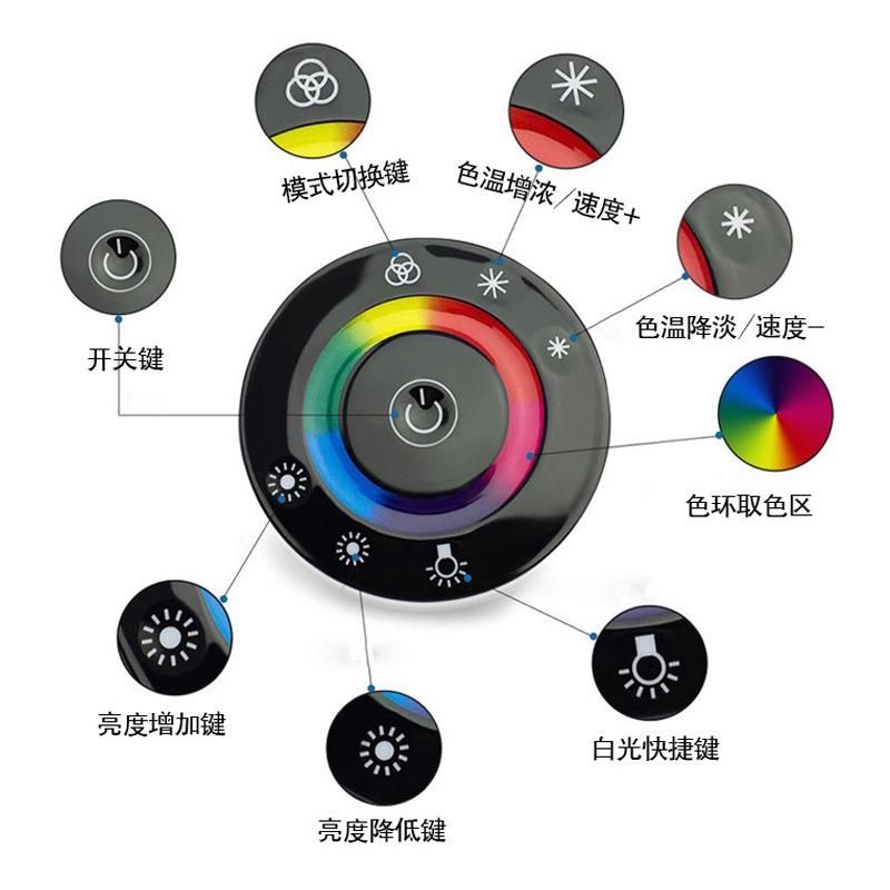 Tira de Luz LED Colorida Controlador Táctil Redondo Tira de Luz RGB 12V24V Inalámbrico RF RF Atenuador de Bola