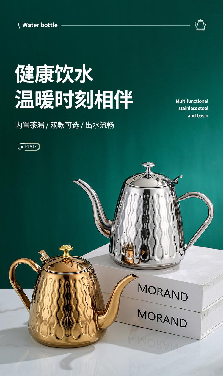 Tetera de acero inoxidable espesada con colador para piña, tetera, cafetera, tetera para hotel, restaurante, tetera para cocina de inducción