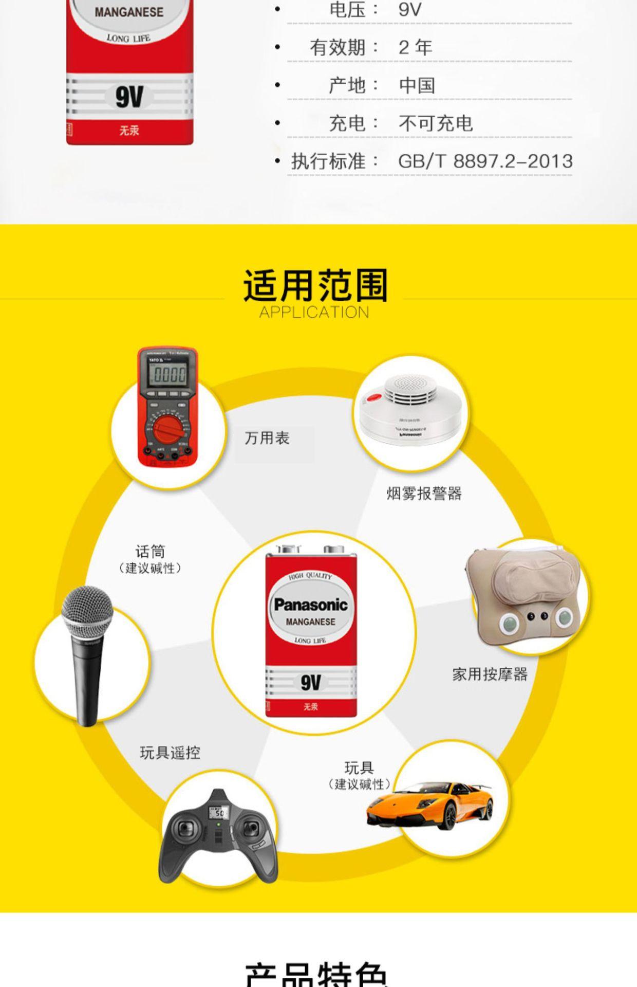 Batería original Panasonic de 9 V, pila de carbono 6F22 cuadrada de nueve V 1604G, multímetro, control remoto, venta al por mayor