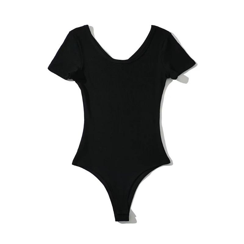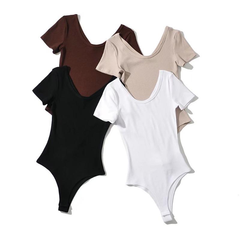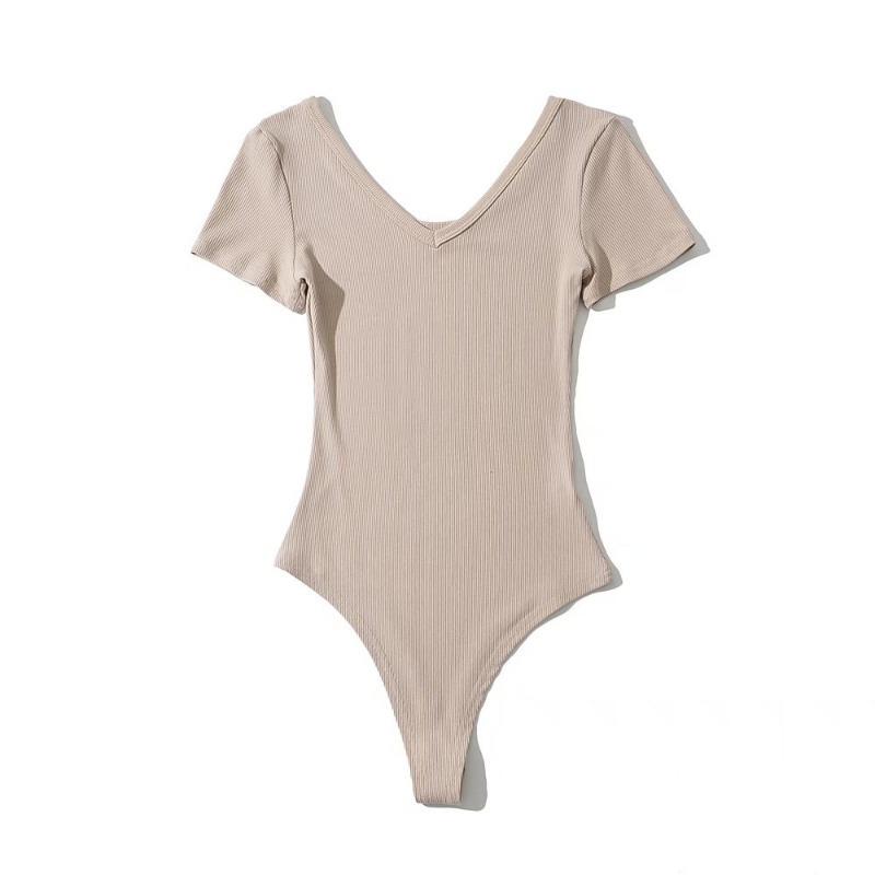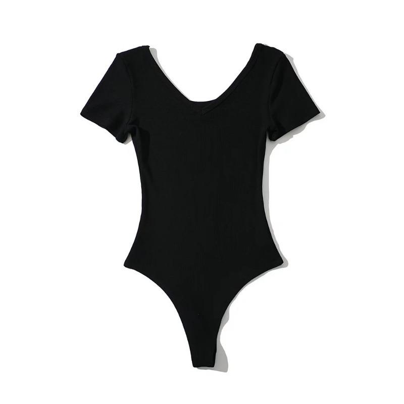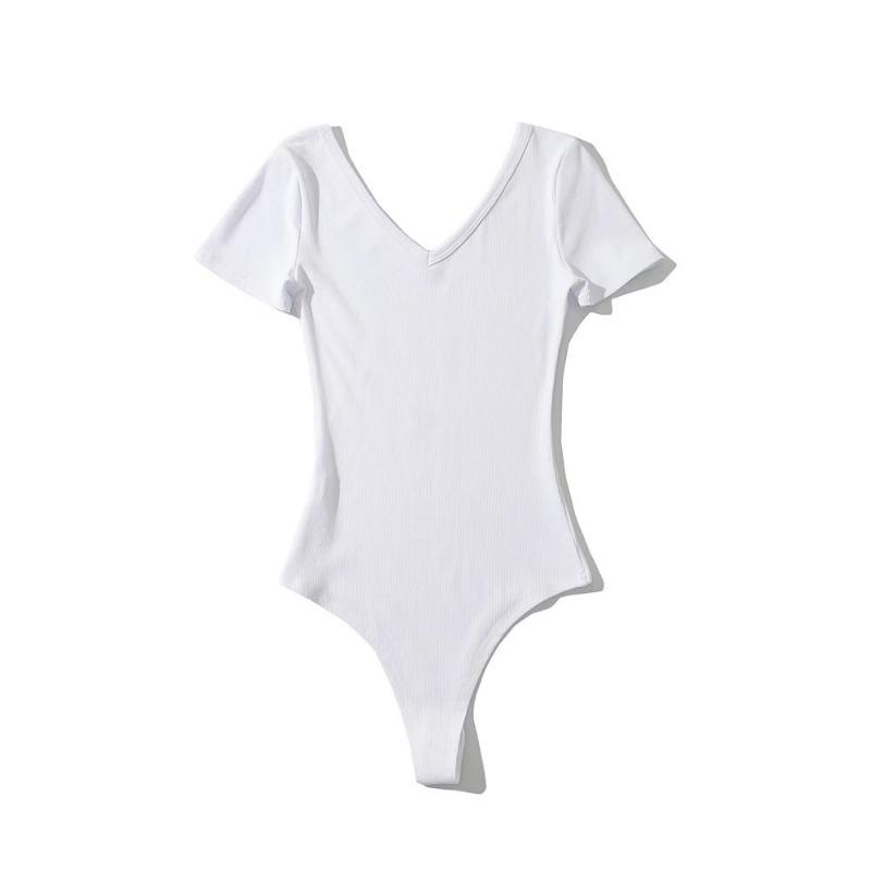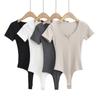 Mono sexy de manga corta para mujer, cuello en V, corte entallado, color sólido, elástico, camiseta de manga corta, novedad de verano de 2022