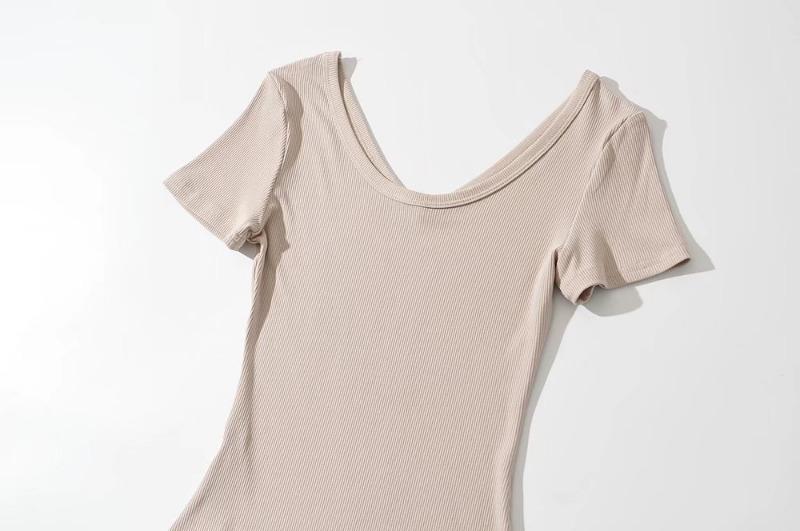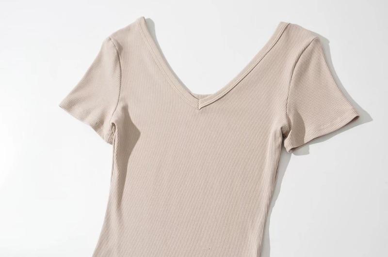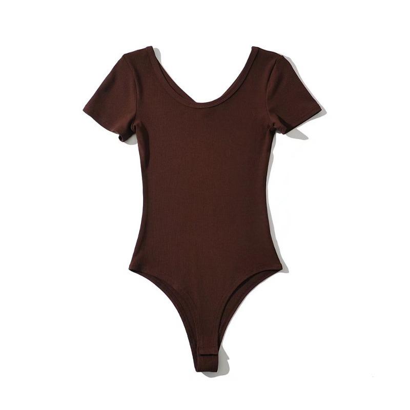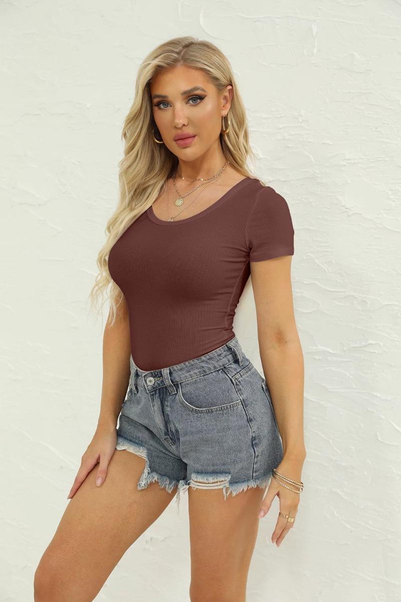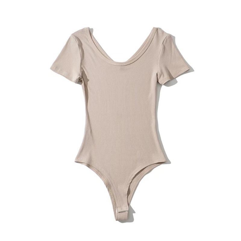Mono sexy de manga corta para mujer, cuello en V, corte entallado, color sólido, elástico, camiseta de manga corta, novedad de verano de 2022