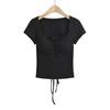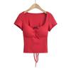 2024 Verano Europeo y Americano Nuevo Cinturón Sexy Almohadilla para el Pecho Sin Espalda Tirantes Huecos Camiseta de Manga Corta Puro Sexy Spice Girls Ombligo