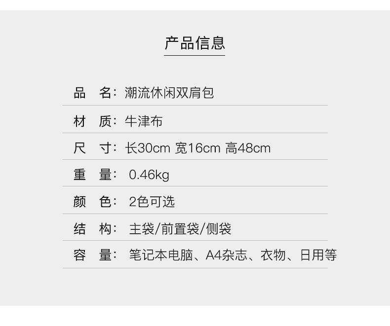 Mochila Oxford con costuras de rayas a la moda, mochila informal con logotipo y personalidad, mochila de viaje de gran capacidad para estudiantes.