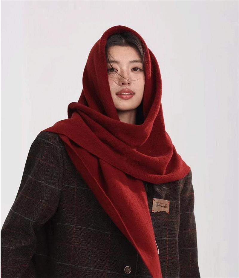 Lana Pura 100% Lana de Alta Calidad Bufanda y Chal de Otoño e Invierno de Doble Uso Color Sólido Bufanda Triangular Grande para Mujer para Usar como Protector de Cuello