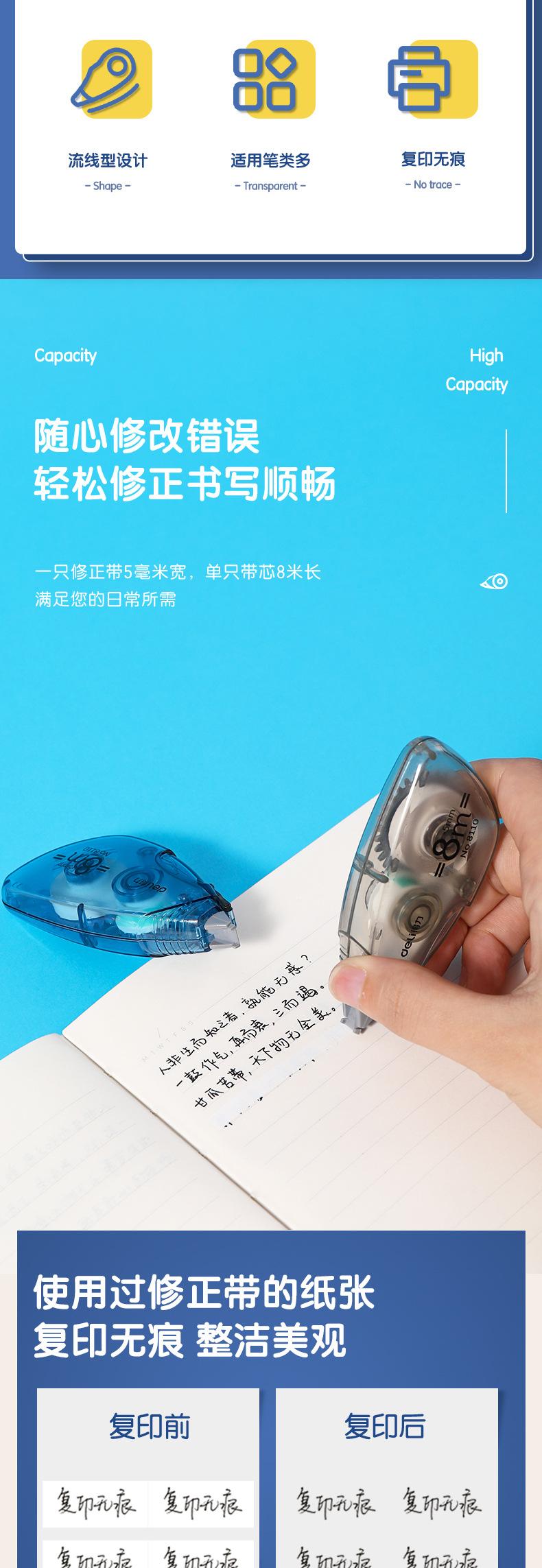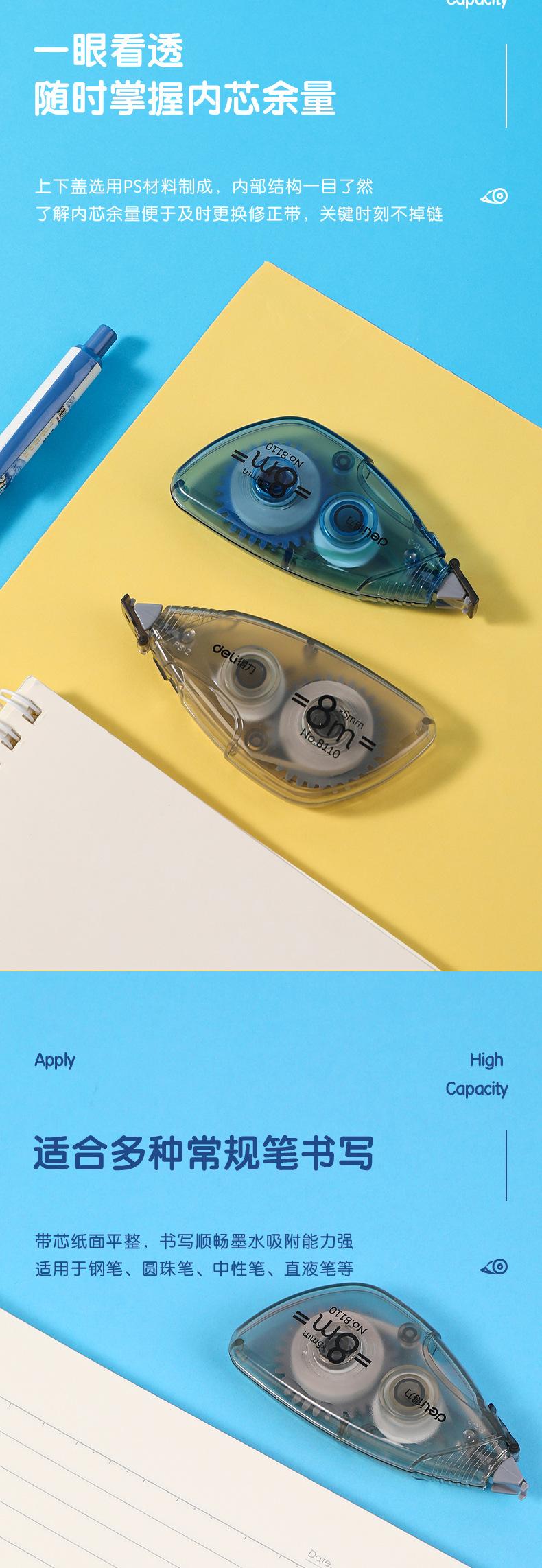 Cinta Correctora Deli Deli 8110 Cinta Correctora para Estudiantes 5mm8 m de Largo Cinta Correctora Fácil de Usar y Copiado Suave