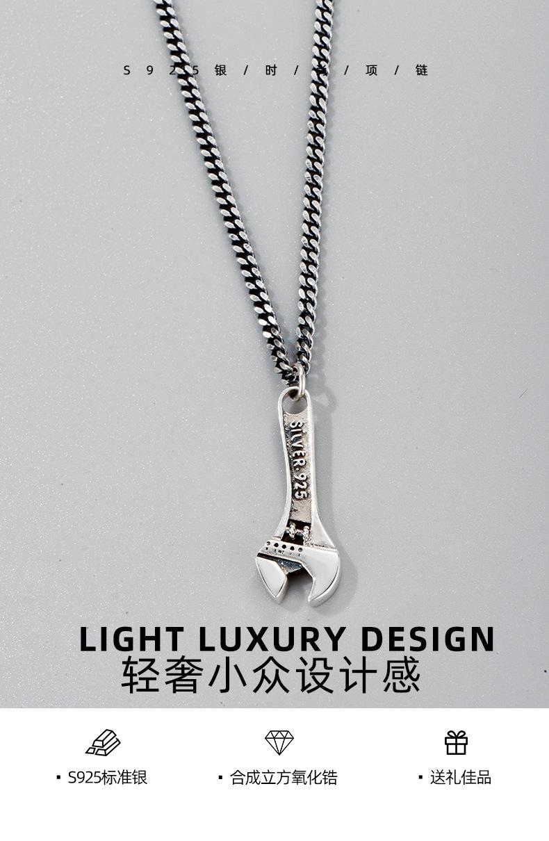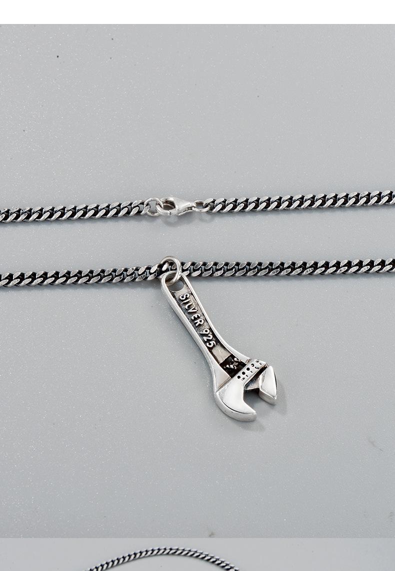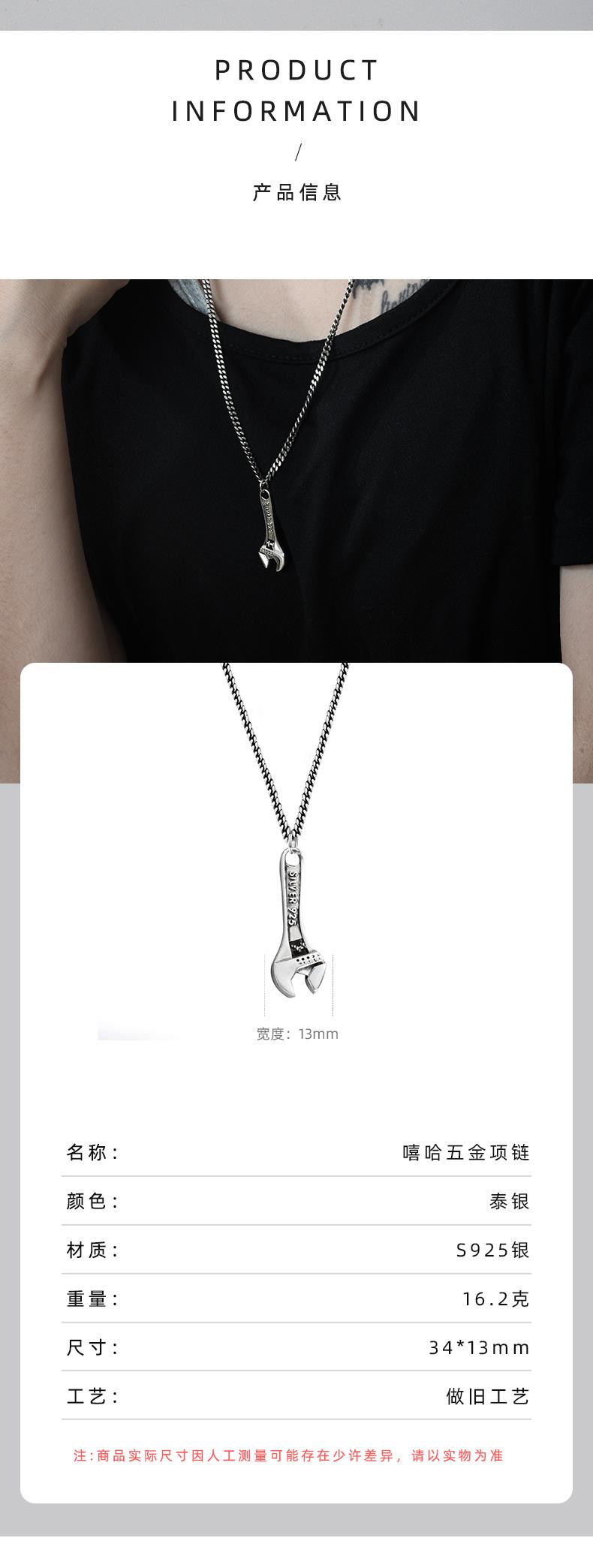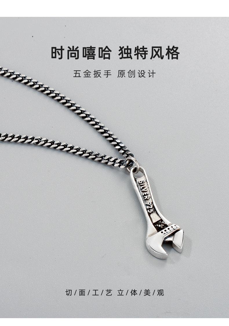 Collar con colgante de llave inglesa estilo hip hop vintage de plata de ley s925 para comercio exterior transfronterizo, accesorios de moda con personalidad para hombre, joyería nueva al por mayor