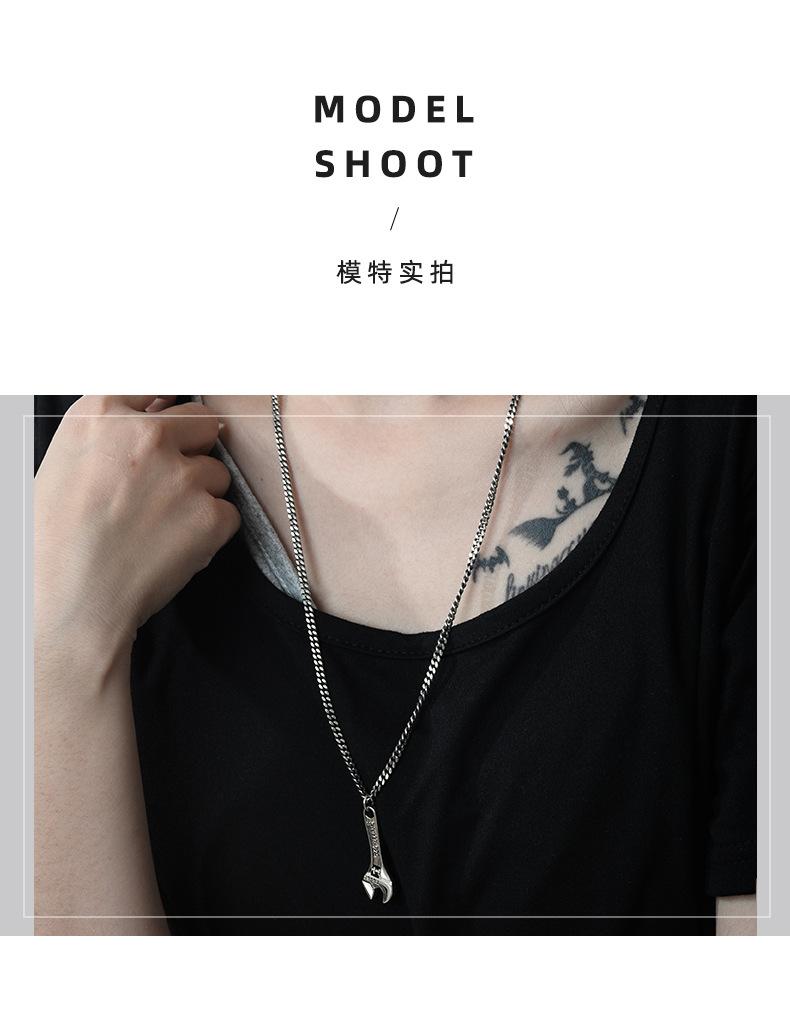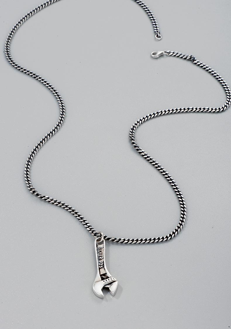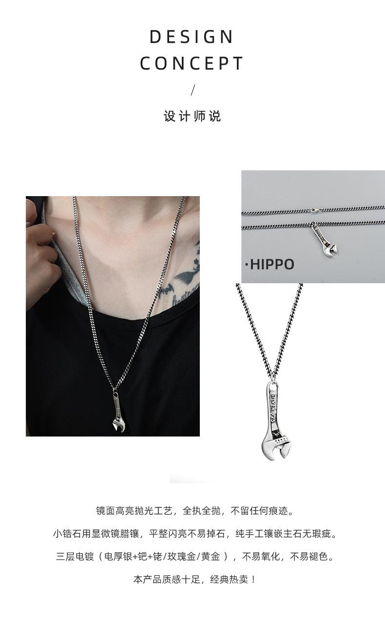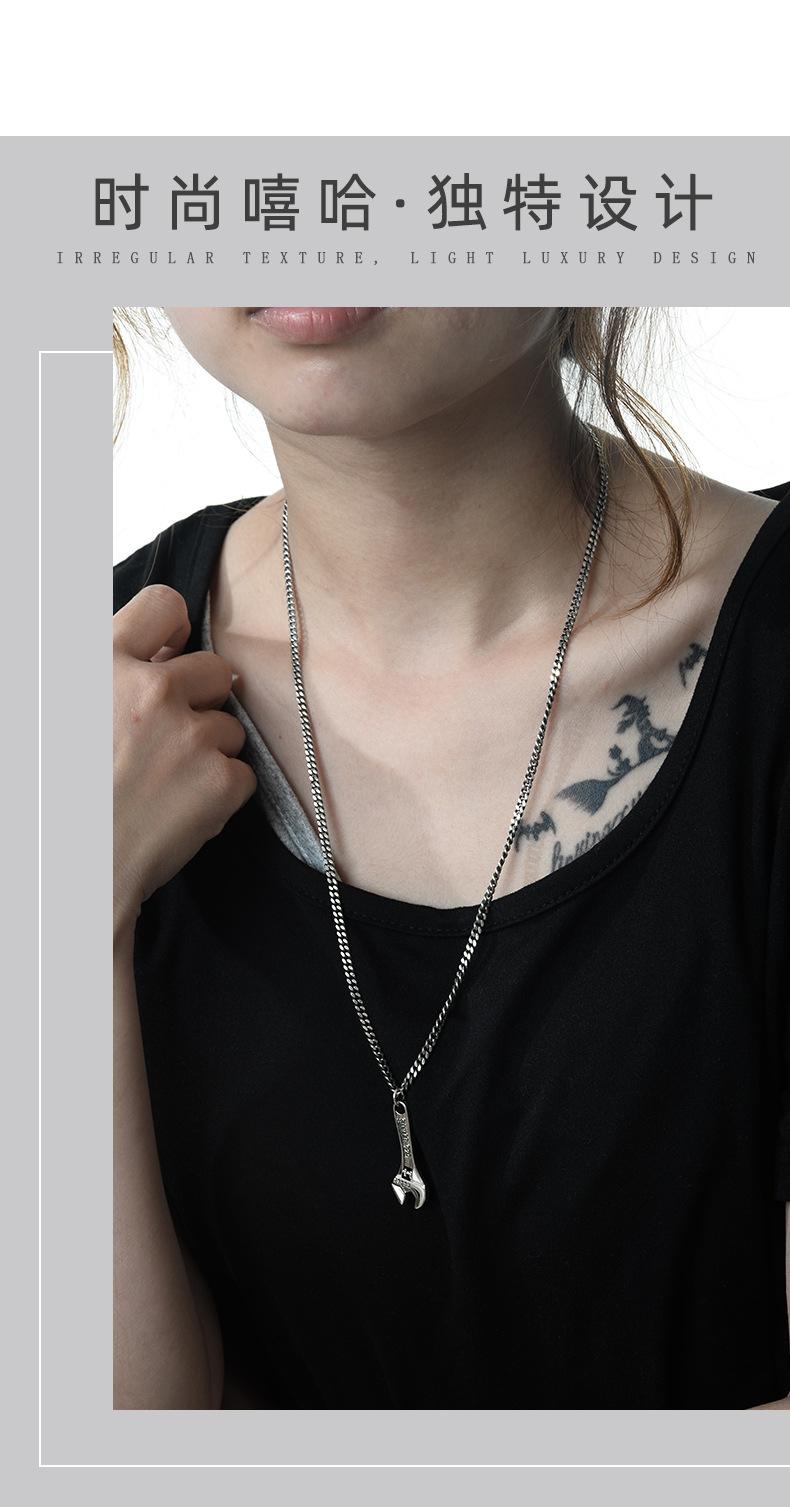 Collar con colgante de llave inglesa estilo hip hop vintage de plata de ley s925 para comercio exterior transfronterizo, accesorios de moda con personalidad para hombre, joyería nueva al por mayor