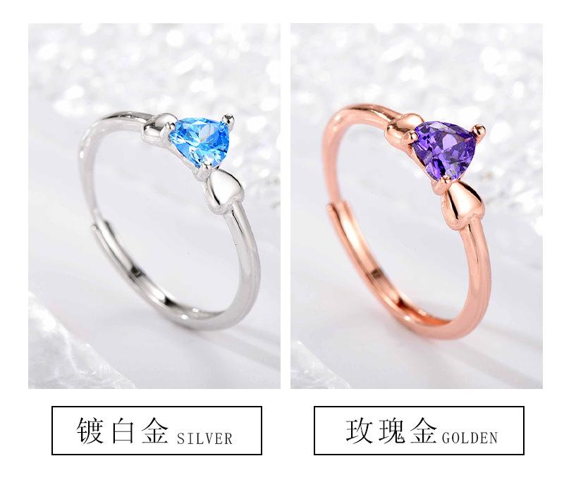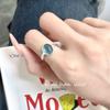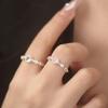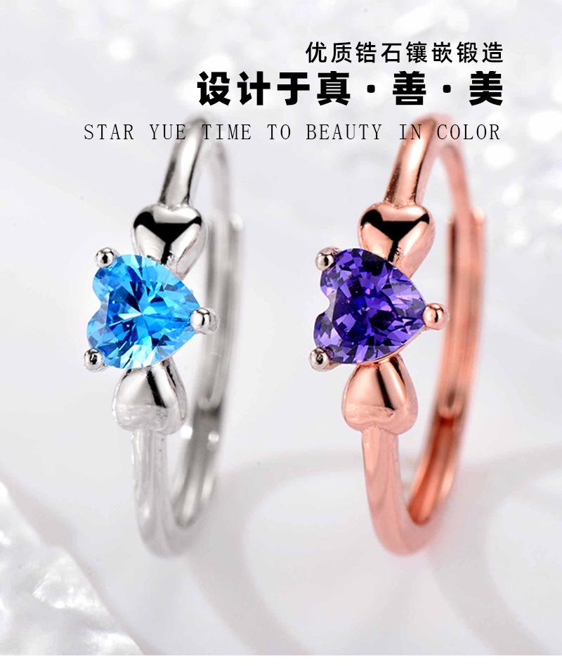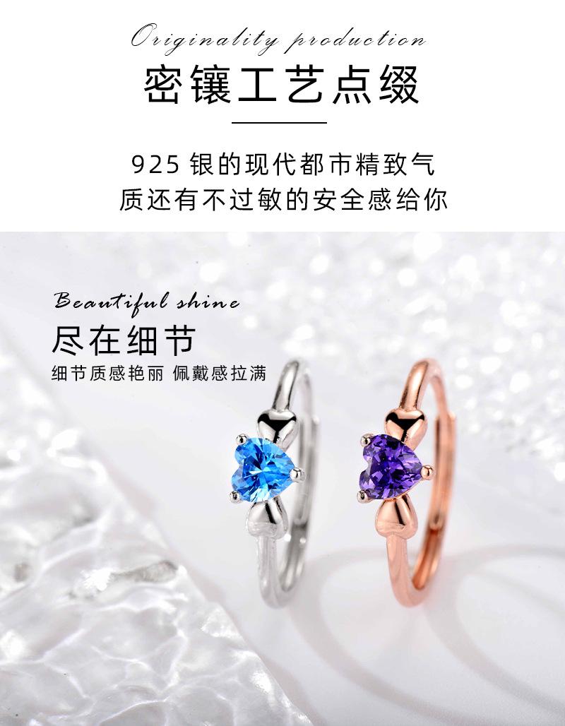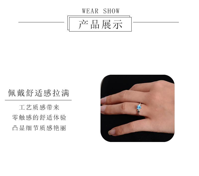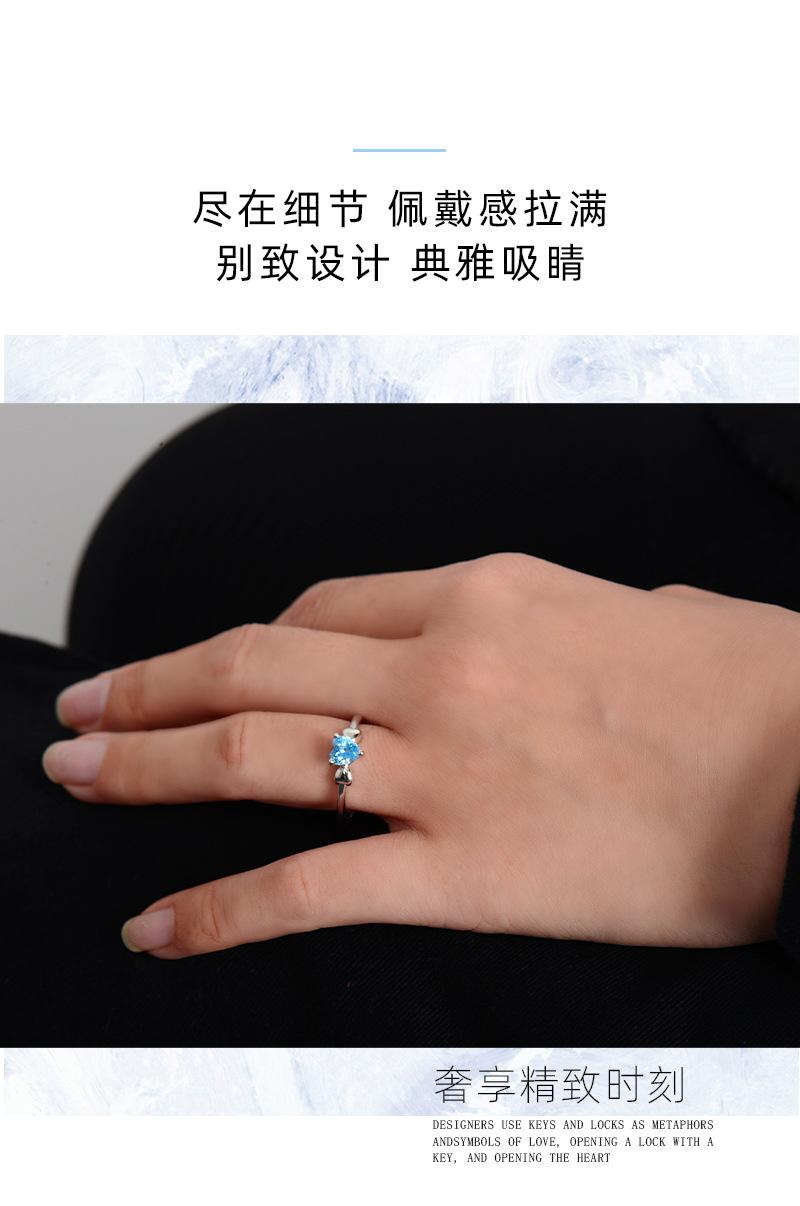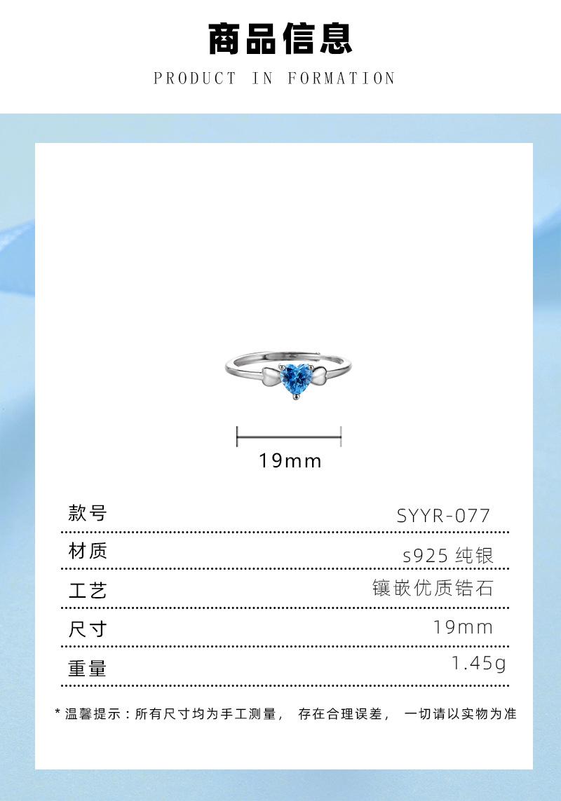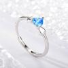 Anillo de Plata de Ley S925 Versátil de Otoño con Zircón de Corazón Aguamarina para Mujer, Anillo Abierto Ajustable Simple Joyería de Plata