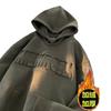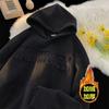 Sudadera vieja lavada de algodón puro de peso pesado de comercio exterior transfronterizo, marca de moda, ropa informal retro con copos de nieve fritos y suelo de piedra para hombres adolescentes