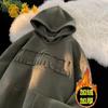 Sudadera tipo cárdigan con capucha para hombre, otoño e invierno 2023, nueva marca de moda, ropa combinable, ropa de calle alta, además de chaqueta de terciopelo estilo americano para hombre