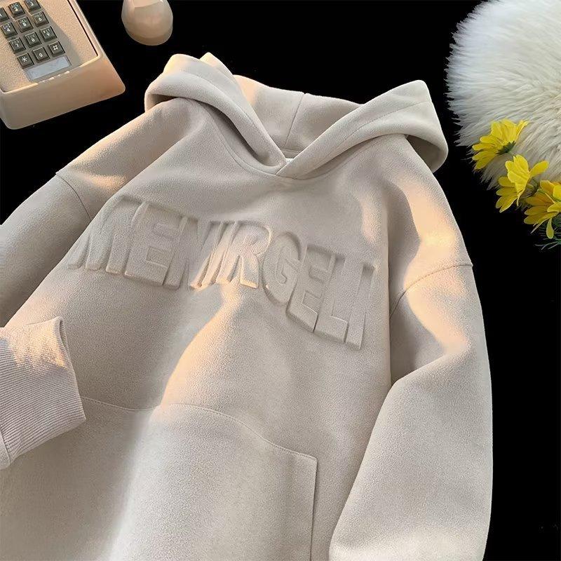 Sudadera con letras tridimensionales para hombre, cuello redondo, marca de moda, top holgado de calle alta, nueva chaqueta de ropa de primavera y otoño 2023 para hombre