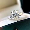 Anillo de Moissanita de Plata Esterlina S925 Clásico Avanzado de Seis Garras para Mujer Moda de Lujo Ligero Europeo y Americano Anillo Abierto al por Mayor