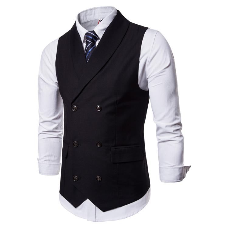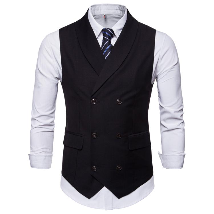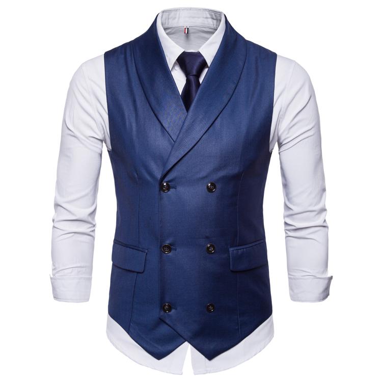 Primavera y Otoño Nuevo Chaleco de Color Sólido para Hombre de Doble Botonadura Corte Slim Chaleco de Traje Británico para Hombre Chaleco Talla Grande Chaqueta