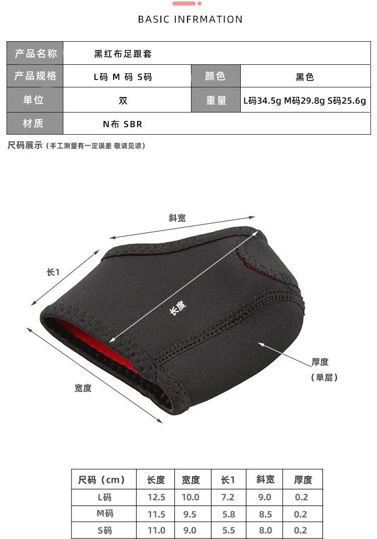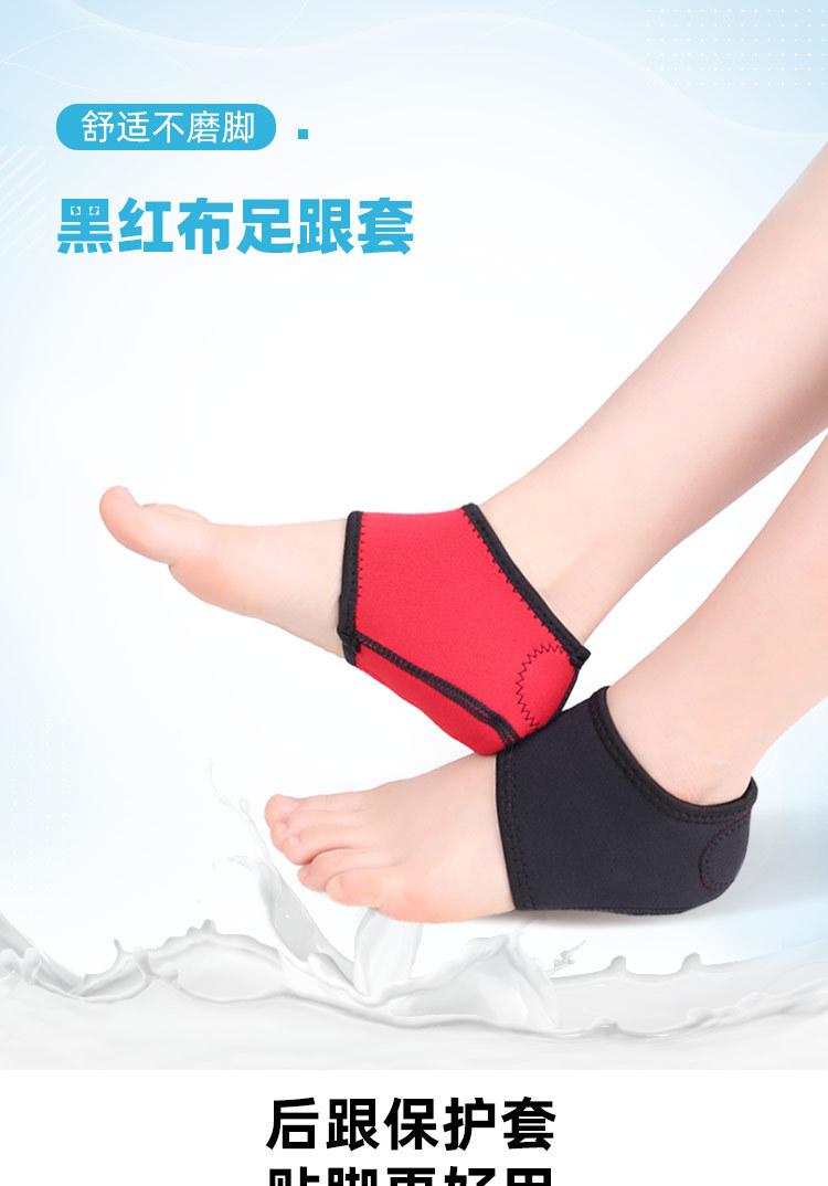 Funda protectora de talón de tela negra y roja para tobillo, antideslizante, absorción de impactos, absorción del sudor, resistente al desgaste, elástica flexible, adecuada para diversas ocasiones.