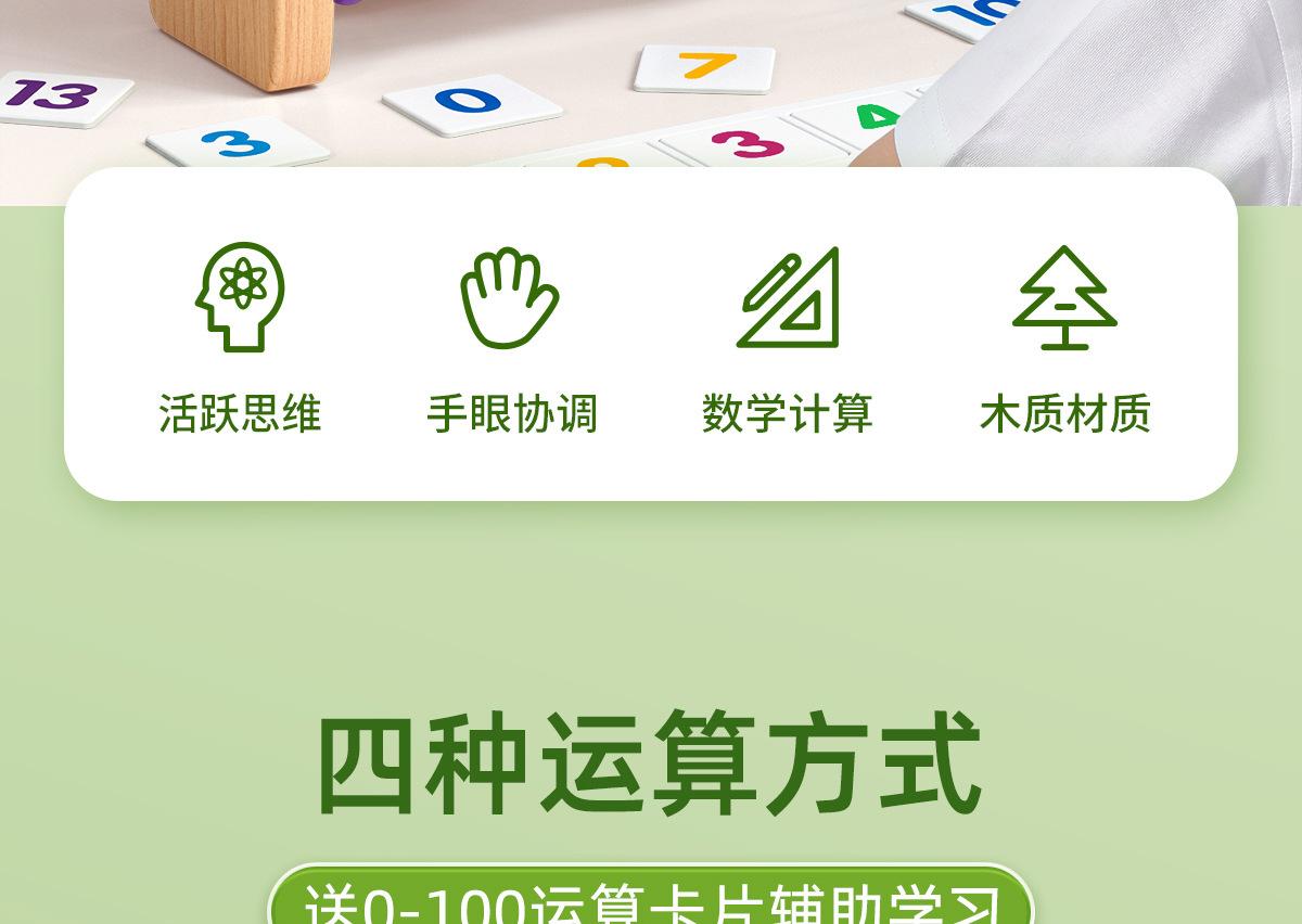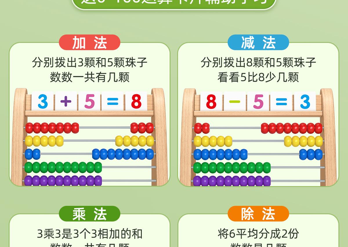 Estante de cálculo para niños Enseñanza aritmética Artefacto consciente Matemáticas Suma y resta Iluminación Aritmética Números Montessori Jardín de infantes Estante de aritmética con cuentas