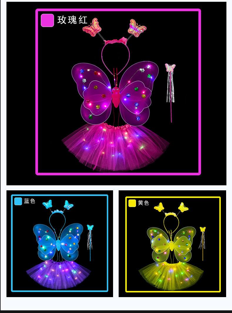 Alas de mariposa luminosas para niños alas iluminadas de doble capa juego de tres piezas accesorios para jugar en la espalda juguetes de puesto