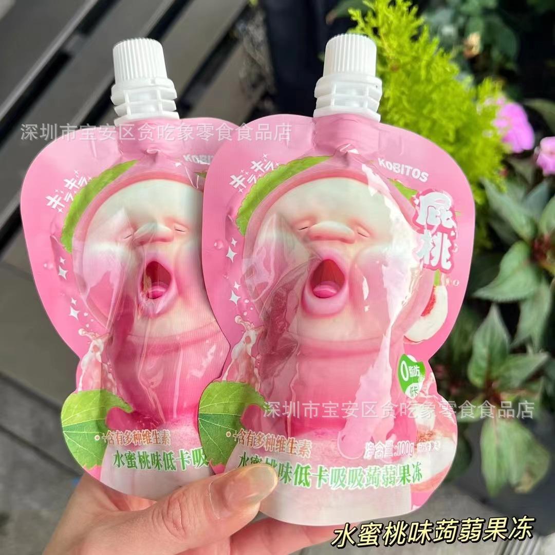 Nuevo producto de marea nacional Zuo Fart, pudín de gelatina con sabor a melocotón King, bocadillos rojos de red para niños, venta al por mayor