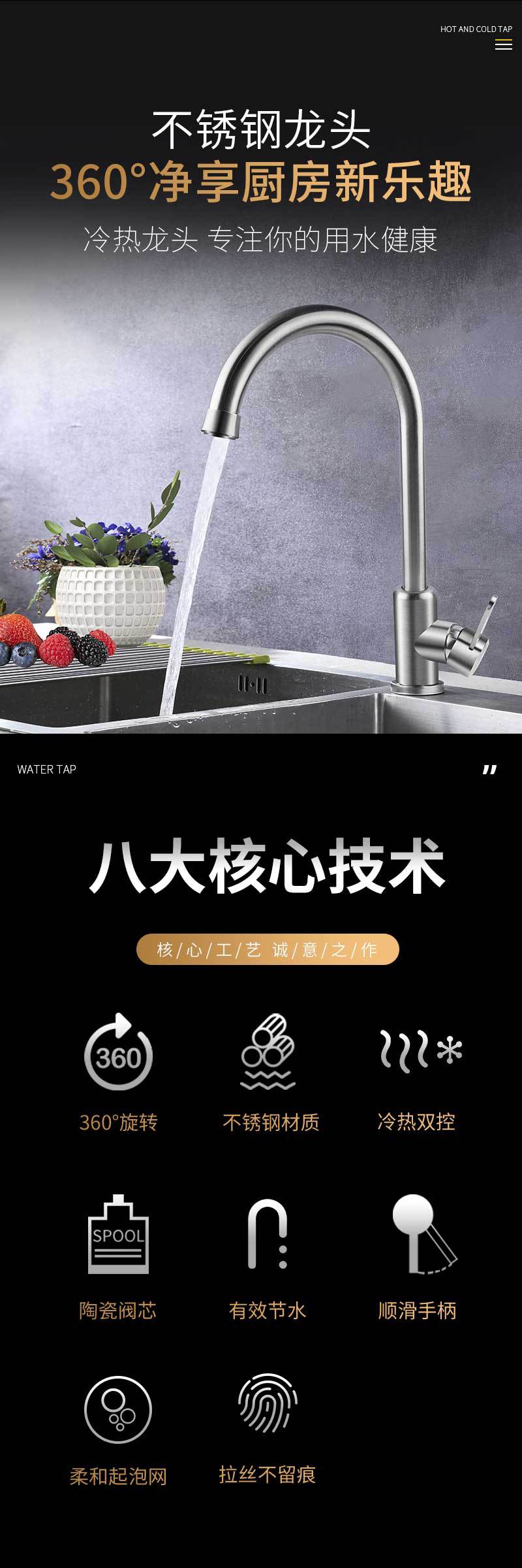 Rusty package back 304 brushed vegetable basin stainless steel ball bald head powerful bending faucet (2/box), a 40, (weighing about 1000g)