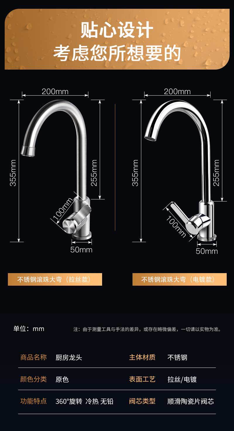 Solid shell 201 brushed vegetable basin stainless steel ball bald head powerful bending faucet (2 PCs/box), a 40, (weighing about 1000g)