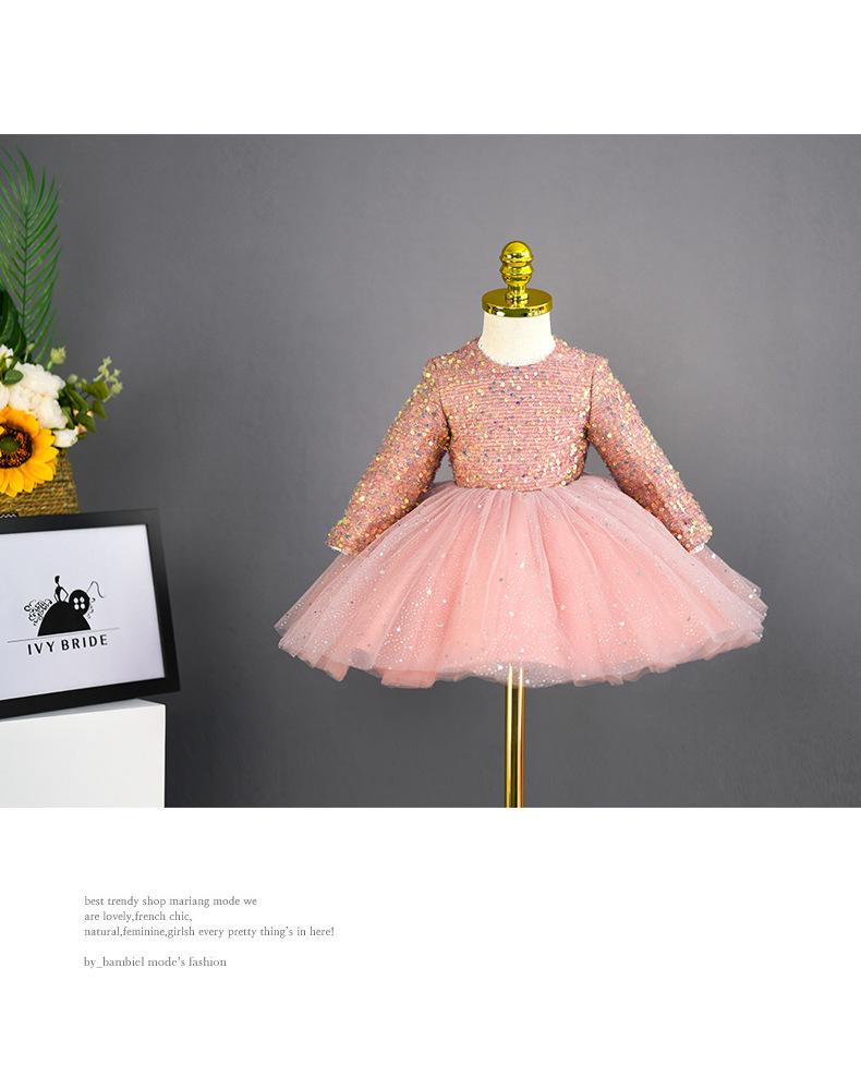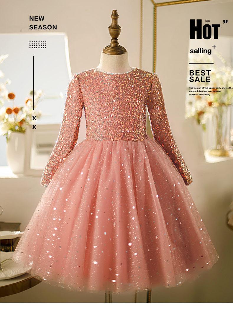 Vestido de Niña de Manga Larga 2025 Nuevo Vestido de Princesa para Boda Niña de las Flores Aliexpress Ropa para Actuación de Piano Cumpleaños Infantil