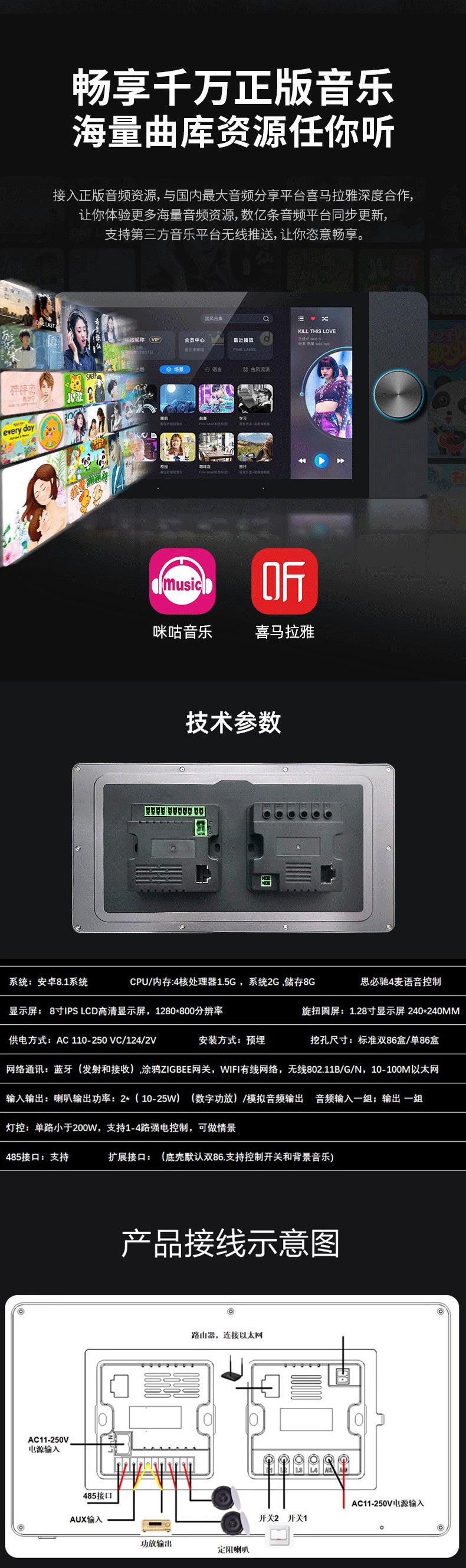 Sistema de música de fondo con panel de interruptores de color con atenuación Zigbee y pantalla de control central de 4 a 12 pulgadas para casa inteligente Graffiti